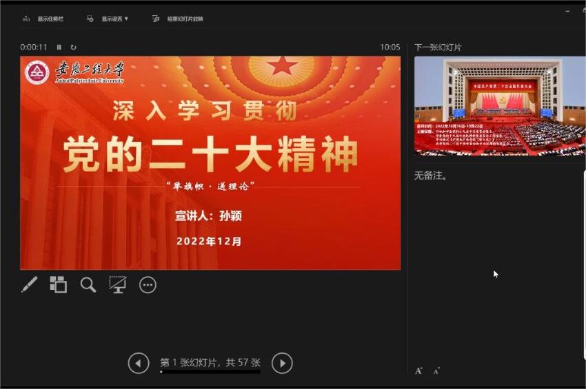 本网讯 12月28日,纺服学院线上开展党的二十大精神宣讲。校宣讲团成员、经济与管理学院副教授孙颖主讲,学院党委理论学习中心组成员、支部书记参加。会议由学院党委副书记徐珍珍主持。