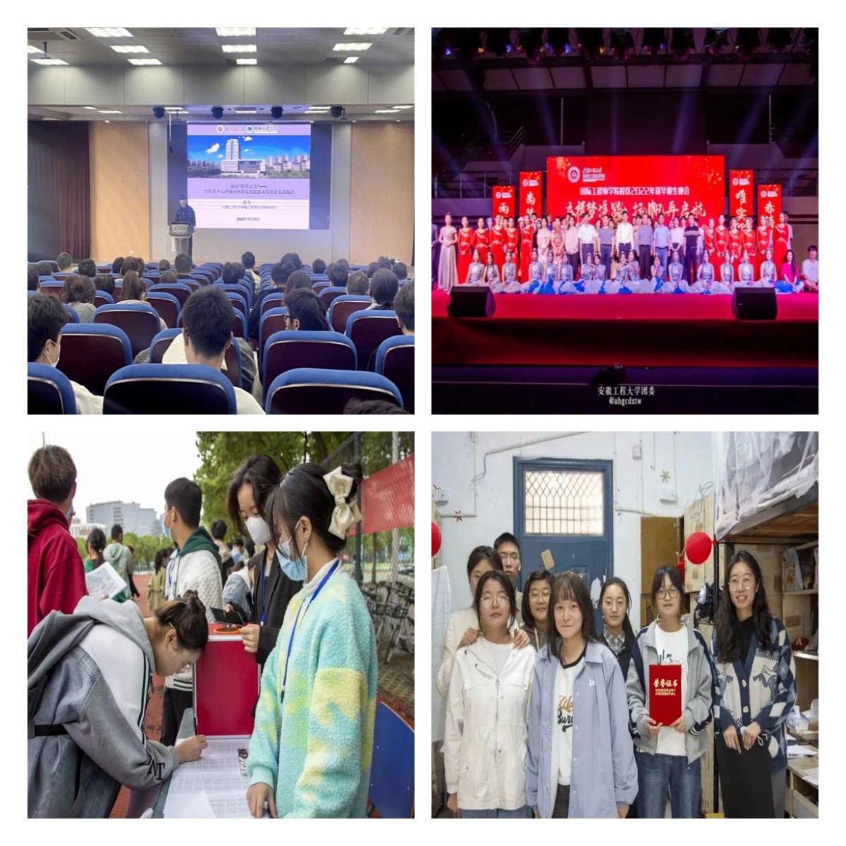 培育“乐”心态,精准推进心理健康教育,坚持做好青年学子的知心人。重点围绕台账建立、教育引导、家校互动、活动宣传等方面采取推进措施。建立重点关注学生信息档案,全员实行“一人一档”,精准施策;深入推进家校互动,形成育人合力;举办“激活‘朋辈之力’”心理辅导专题讲座、5·25“悦纳自我,赋能青春”心理健康周系列活动和“12·5”心灵漫画设计大赛;走访关怀家庭经济困难学生,开展针对困难学生捐款募捐;开展“师生同筑梦 欢乐庆国庆”主题活动;针对毕业生,开展就业心态调整、就业压力疏导、就业观念培育等班会和实践活动;举办2022届毕业生晚会、“疫”路同行,温暖“心”田、乐玩徽程系列活动之校园寻迹和水果拼盘大赛、我与国旗同框、情归纸笔、寝室设计大赛、军训慰问演出、新生才艺大赛等特色主题活动;将“美”元素积极融入学生生活、学习、实践活动。关注网络大“V”学子,发挥正面引导作用。疫情防控期间,学院学生严格遵守学校防控工作纪律,未发生涉疫舆情。2022年,学院抓实抓细维护安全稳定工作。