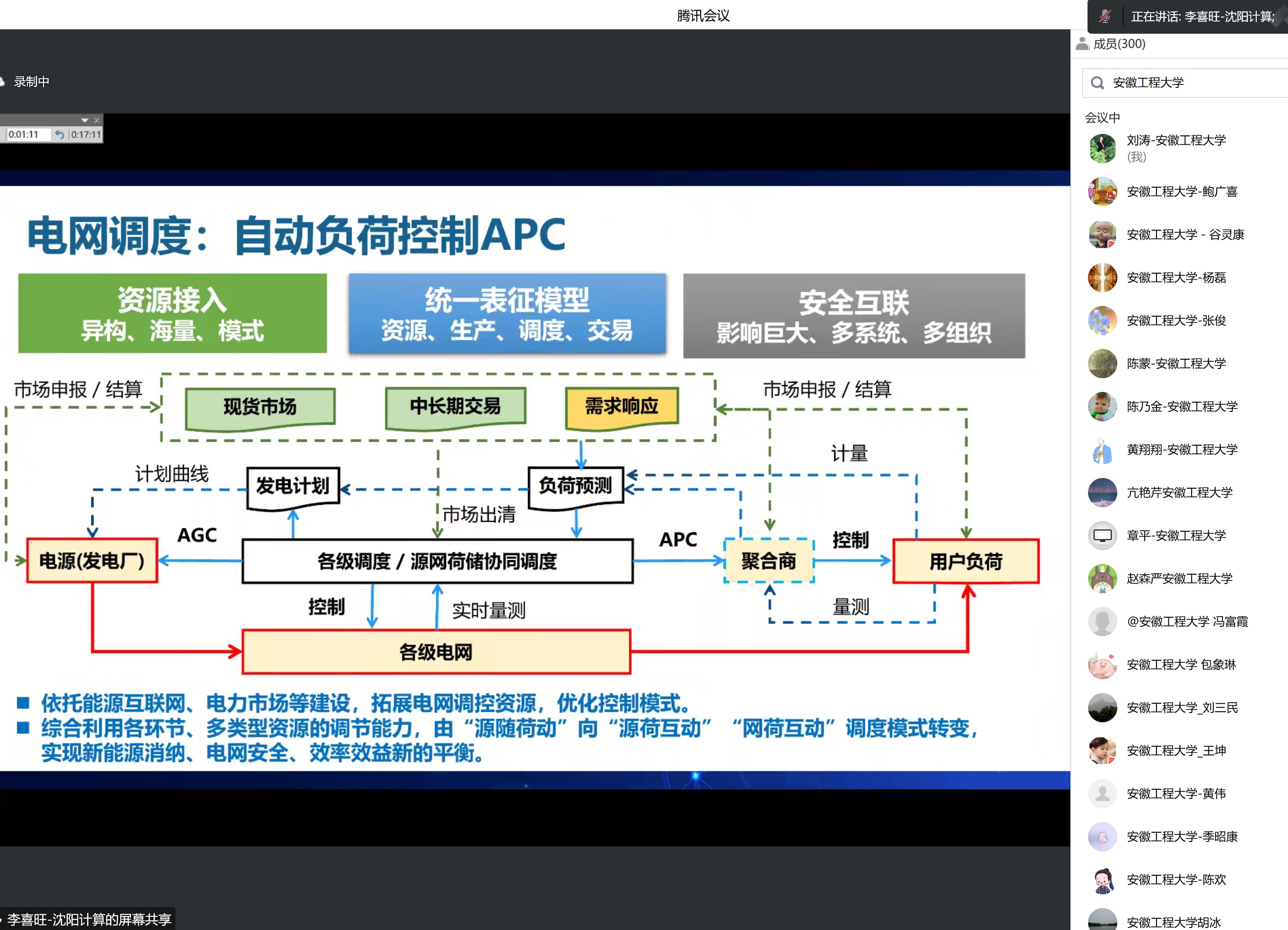 会议由中国科大信息智能学部执行部长李向阳主持。在开场介绍后,依次由东北大学副校长、东北大学学术委员会副主任王兴伟做了智能化工业互联网报告;中国科学院沈阳计算技术研究所副总工程师李喜旺作数字能源虚拟电厂云平台报告;三一集团智能研究院院长刘岩作三一智能制造实践报告;新奥新智数字技术研究院常务副院长李增祥作基于产业互联网的联合学习技术与应用报告;江苏亨通数字智能科技有限公司总经理马建强作亨通工业互联网探索与实践报告;李向阳作工业互联网:智能感知、边缘计算、与安全初探报告;东南大学首席教授罗军舟作工业互联网的云端融合报告;清华大学全球创新学院院长刘云浩作工业互联网模态关键技术报告。