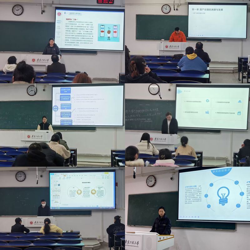 汇报会上,学生以PPT的形式从课题的研究意义、研究思路、主要研究内容和方法、进度安排、目前遇到的困难等方面进行了汇报;答辩评委老师认真听取同学们的汇报后,根据同学们的陈述和开题报告进行提问,并对汇报中存在的问题提出修改意见及建议,为答辩同学指明方向,找到解决问题的方法。