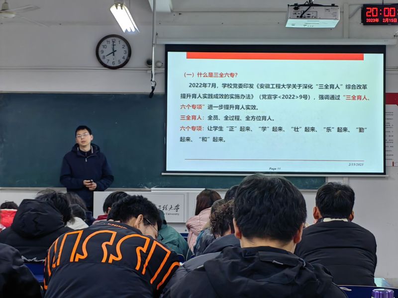 辅导员胡晓康老师解读了《关于对新型冠状病毒感染实施“乙类乙管”的总体方案》,引导学生树牢并自觉践行“健康第一”理念,坚持戴口罩、勤洗手等良好卫生习惯,保持宿舍卫生干净通风,加强身体锻炼,保持健康生活方式,提升健康素养和自我防护能力。