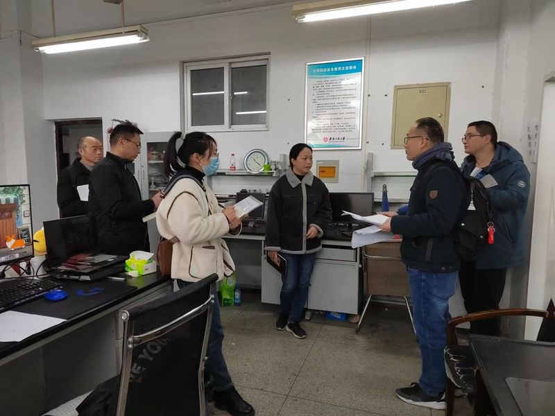 本网讯 2月22日,芜湖市应急管理局危化科科长童诚带领专家组对学校实验物资中心、废液暂存柜、化学与环境工程学院、生物与食品工程学院、材料科学与工程学院和纺织服装学院实验室开展安全检查。