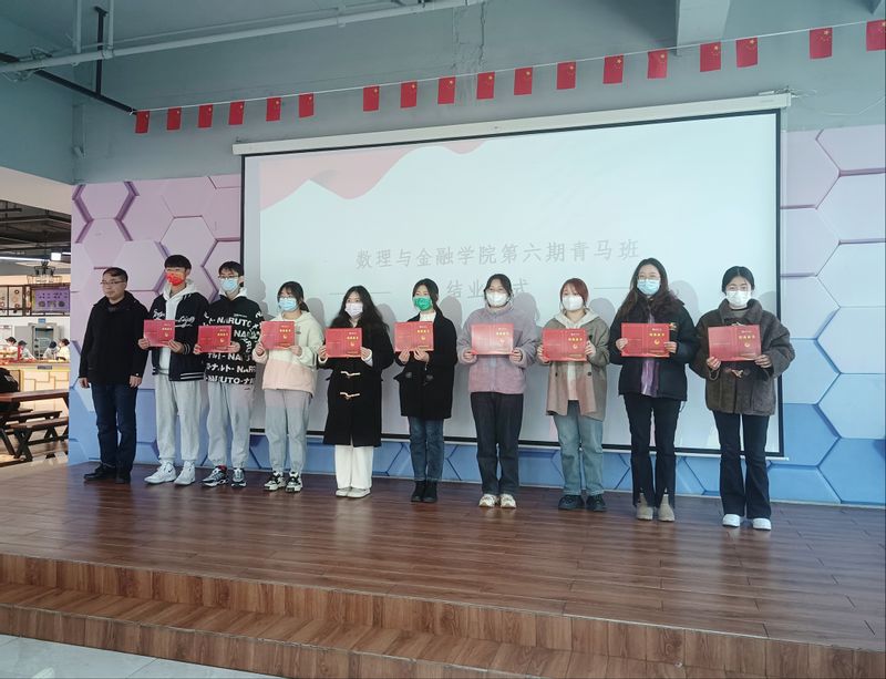 自2022年3月开班以来,数理与金融学院第六期青马班共开展12次专题课程学习及各类实践体验课程,开展了献礼党的二十大——红色经典诵读会,举办了3次沉浸式团课,在轻松愉快的实践中寓教于学。培训期间,学员们秉持全方面发展原则,以高标准要求自己,在学业、竞赛、志愿服务等多方面均取得骄人成绩。2022年度共有10人获得三好学生称号,7人获优秀学生干部称号,多人参加全国数学建模比赛、安徽省大学生金融投资创新大赛、安徽省区块链应用创新大赛等赛事并获得国家级、省部级奖项。学员们利用寒暑假积极参加社会实践,先后参加了青年红色筑梦之旅、“三下乡”等活动。与此同时全体青马班学员也积极投身志愿服务活动,参加了“暖途”火车站志愿服务、“星火”义务支教、邮储志愿服务队等,并主持、参与了数项团百花志愿服务活动。