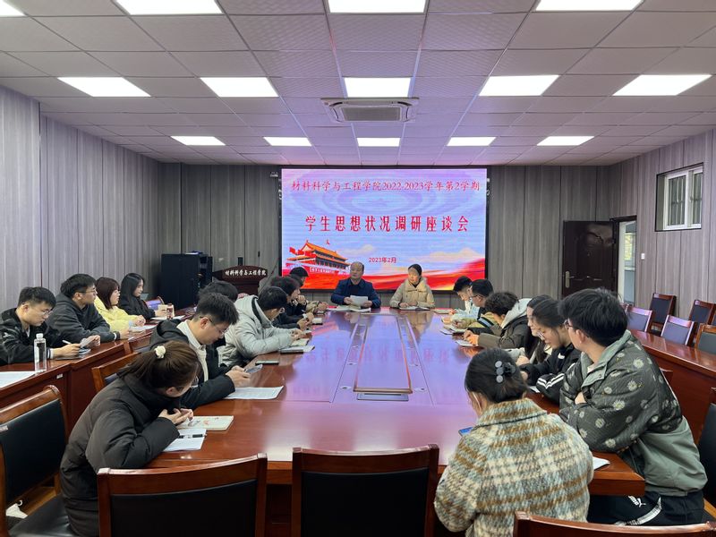 根据学校部署安排,材料科学与工程学院于2月27日-28日在学院会议室、宿舍青年议事中心召开学生思想状况调研座谈会。全体辅导员、本科生和研究生代表参与。学院党委书记郭广春、学院党委副书记方玖胜、副院长刘琪分别参加座谈会。