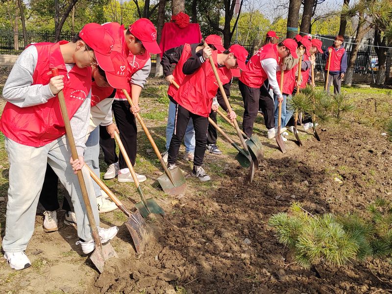 生物与食品工程学院志愿服务队约二十多人,于3月3日至5日带着扫把、铁锹、铲子等工具,在校内研一宿舍楼劳动教育实践基地里开展翻土整地种花添绿志愿服务。大家分工合作、配合密切,先用扫把和铲子清理花坛中的杂草和大石子,遇到难以拔除的杂草,直接用手连根拔起,再用铲锹将硬土一块一块的翻开平土,经过一上午的努力,使杂乱不堪的小花坛变得平整干净,为绿化种花、美化校友环境添砖加瓦。