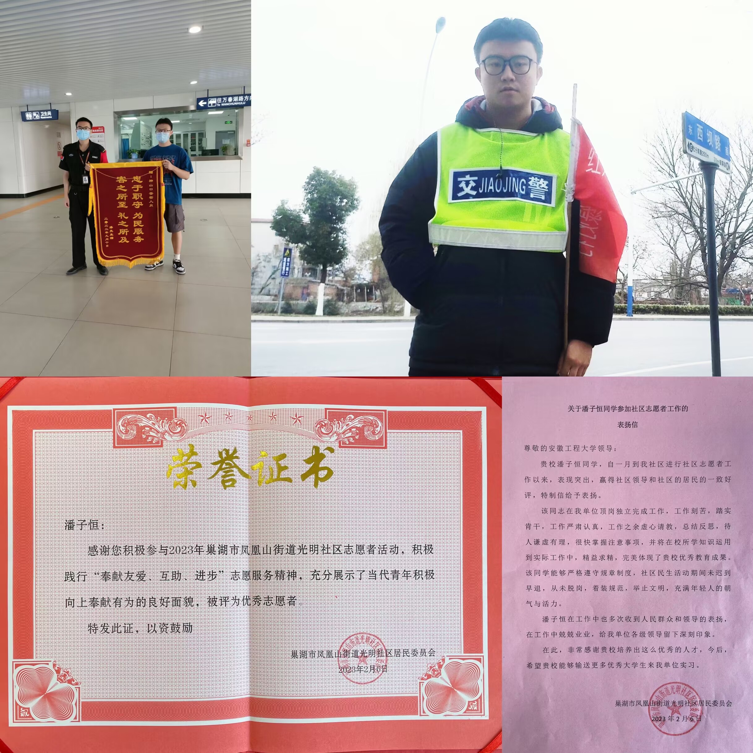 潘子恒是同学们眼中的“志愿服务小达人”,他热衷于志愿服务,主动利用假期投身家乡建设,在担任志愿者期间,积极协助社区开展慰问老人、撰写对联、维护交通秩序等活动,工作之余也会走进儿童福利院,提供力所能及的帮助。潘子恒表示,在志愿服务中感受到了帮助他人的快乐,寻找到了作为一名新青年的自我价值实现方式。
