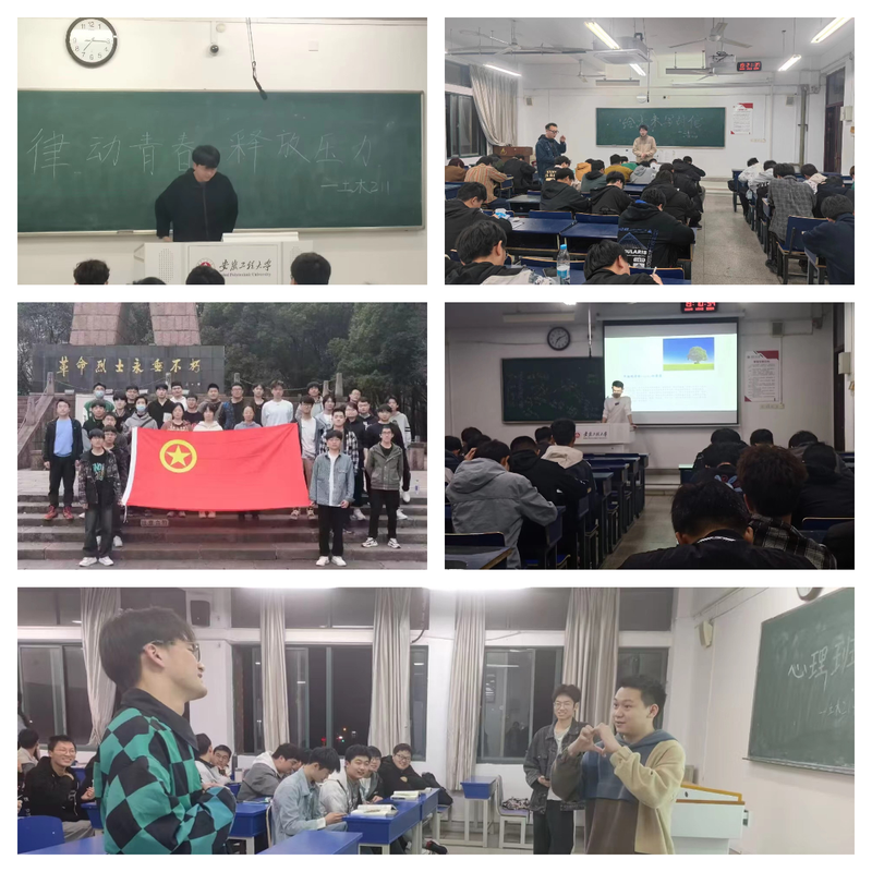 土木211举办了以“律动青春 敞开心灵”为主题的心理健康活动。依托“九九乘法表”“心有灵犀”“听曲猜歌”等小游戏开展;土木212组织同学给未来的自己写信,写完之后统一保存,在大学毕业之际拿出来共同回忆美好的大学生活;土木213通过观看心理健康电影,围绕 “大学生如何正确解决心理困惑”教育主题,畅所欲言,抒发己见;土木214将“大学生人格与健康”融入游戏环节,活跃了班级的气氛;给排水211组织了一次祭扫烈士陵园活动,回顾历史,重温历史,了解革命烈士的英雄事迹,增进了爱国主义情感;给排水212在班级开展“数字油画”活动,绘画作为心理疗法中的一种,有效帮助学生释放负能量、解压、宣泄情绪。