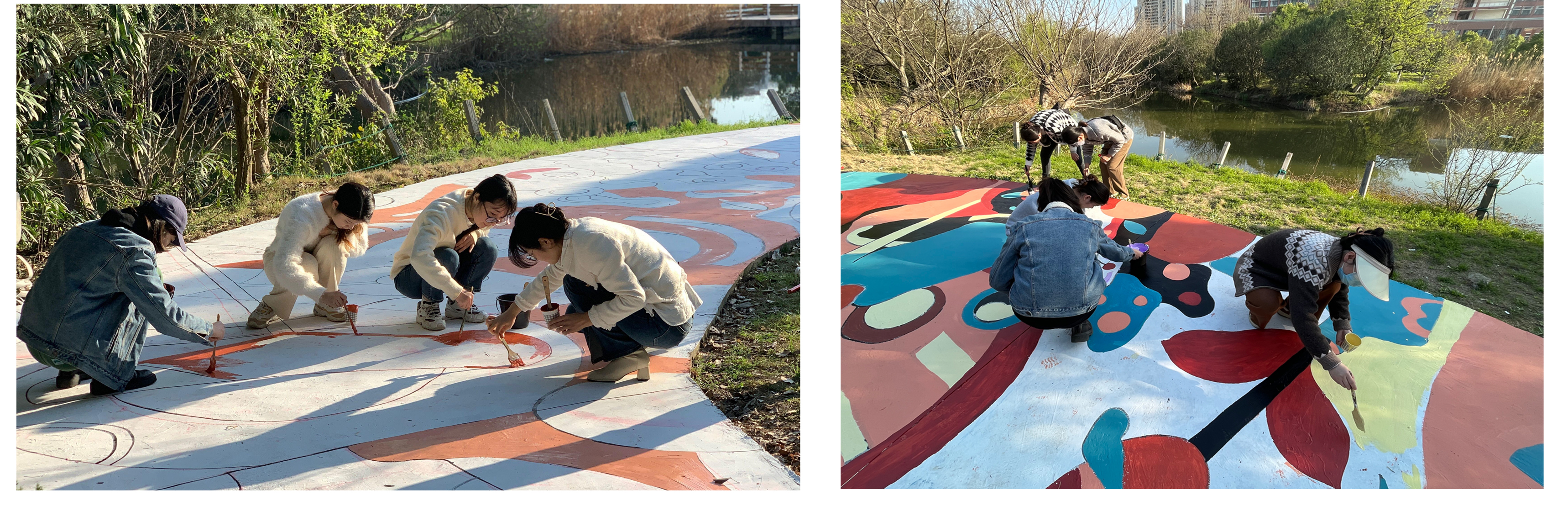 研究生第一党支部书记李梦园带领支部党员,对学院楼前的道路进行了彩绘美化的工作。他们令单调的小路一改往日形象,摇身变成主题鲜明、色彩突出的彩绘路面,成为了设计学院门前一道靓丽的风景线,更好体现出学院特色,进一步提升了学院道路景观效果,营造出干净、整洁、优美的校园环境。
