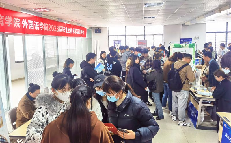 本网讯 为深入贯彻党的二十大精神,落实党中央、国务院关于普通高校毕业生就业工作的决策部署,促进毕业生充分就业和高质量就业,3月22日,体育学院联合设计学院、外国语学院在师生活动中心二楼举办了2023届毕业生校园专场招聘会。相关学院党政领导、毕业班辅导员和全体2023届毕业生参加了招聘会。