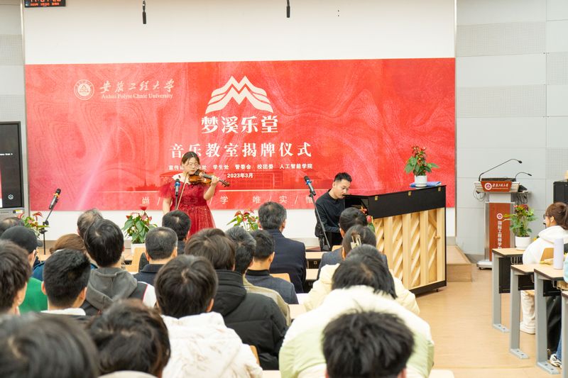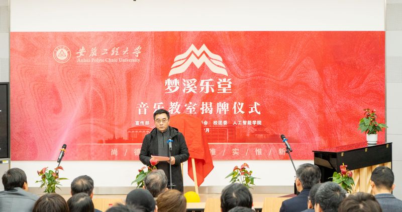 郑健在致辞中指出,工科学院创建音乐教室、开展音乐教育在学校办学历程中尚属首次,人工智能学院作为分设成立的新工科学院,立足国际工程师校区,坚持以美育促德育,拓展美育教育形式,既是人文素质教育与工程教育一体化融合的创新举措,也为学校“三全六专”育人实践深入推进提供了新的思路和切入点。他希望人工智能学院以音乐教室揭牌为契机,充分利用好“梦溪乐堂”音乐教室平台,吸引和组织更多学生走进音乐教室、爱上音乐课堂,让更多学生在这里展示才华、培养兴趣、释放压力、快乐起来。他要求相关部门积极为音乐教室运行提供资源保障、加强工作指导,助推“梦溪乐堂”音乐教室办出水平、办出特色。
