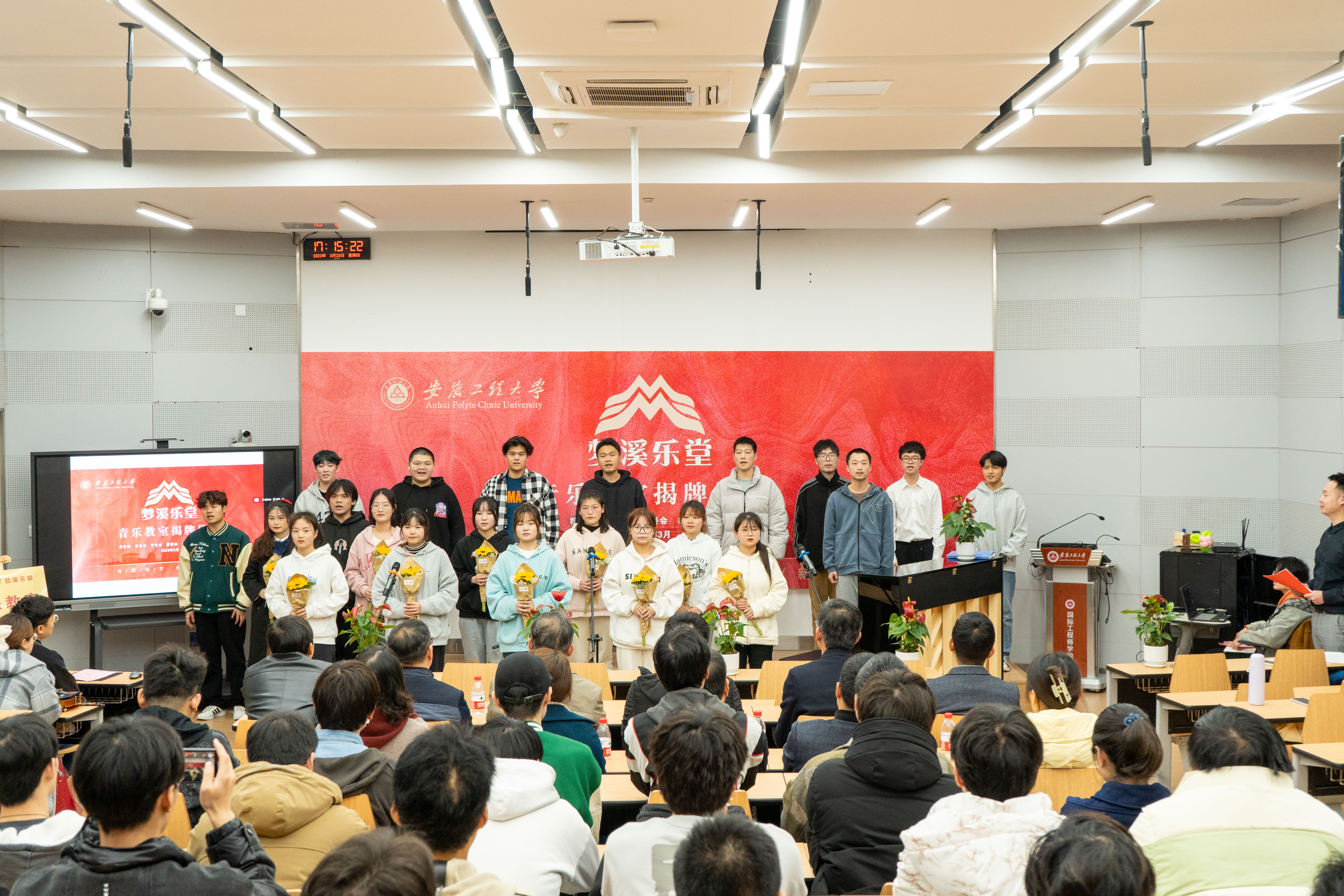 本网讯 3月23日,由人工智能学院创建的“梦溪乐堂”音乐教室揭牌仪式在国际工程师学院校区举行。校党委常委、副校长郑健出席并致辞,宣传部、教务处、学生处、管委会、校团委、机械工程学院、人工智能学院负责人和师生代表参加揭牌仪式。