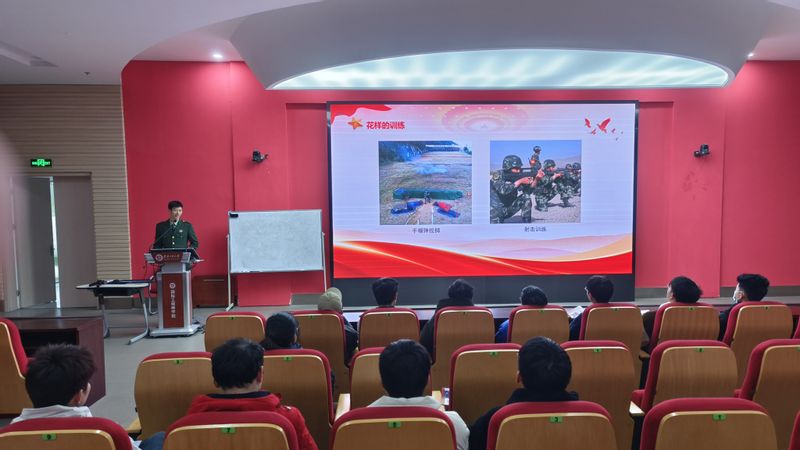 曹明杰同学结合自己在部队的经历,向同学们分享他的军旅生活,讲述部队的训练过程,他表示两年的军旅生活磨炼了自己的意志,加深了对爱国、责任、荣誉、使命的理解,希望大家都可以投身强军伟业,书写无悔青春。