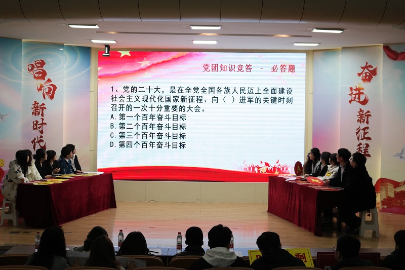 经过前期学院对各团支部综合考核,共有六个团支部进入决赛展示。决赛分为团支部展示(ppt)、团支部才艺展示、党团知识竞答三个环节。第一环节中各团支部针对如何建设五好团支部,重点围绕支部建设、支部成果和支部风采三个方面进行现场展示,汇报精彩纷呈,全方位、多层次地展示了团支部的无限活力。第二环节的团支部才艺展示,他们或演讲、或合唱、或主题宣讲,虽形式不同,但却无一不体现了人文学院学子的青春、激情与活力。第三环节采用必答+抢答相结合的形式,考察团员对党的二十大精神和全国两会精神等党、团知识的掌握,各团支部参赛同学积极抢答,现场竞争热烈。