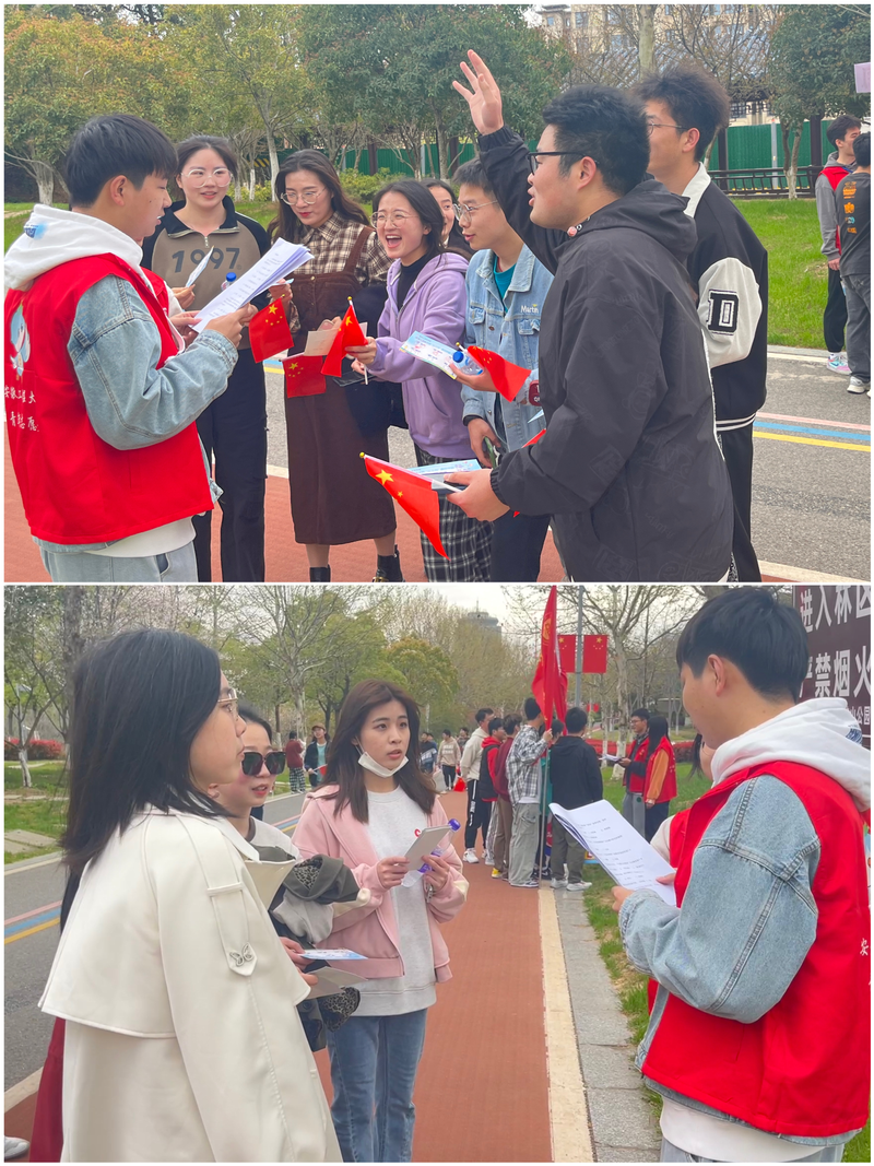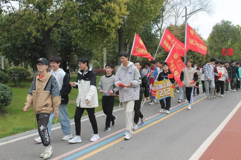 踏着明媚春光,在微风习习中,伴随着《青春万岁》荡气回肠的朗诵声,健步走活动在雕塑公园阳光草坪正式开启。本次行走路线为雕塑公园主赛道一圈,累积健步走里程达5公里。沿路共设置“正”起来、“学”起来、“壮”起来、“乐”起来、“勤”起来、“和”起来六个打卡点,在打卡点不仅能参加趣味活动还可以获得满满能量补给,率先达到终点的前50名同学可获得精美礼品。