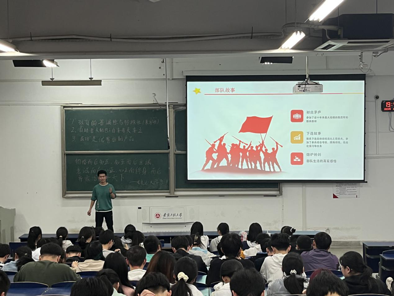 作为IEEE会员,智能交互联合实验室工程师,袁政卿结合大学入学以来的学习科研经历,阐述了自己对于科研的理解,分享专业学习、参加学科竞赛的经验,就如何找准研究方向、迈出科研的第一步给大家提出建议。夏海彬是一名退役大学生士兵,他以“热血铸军魂”为主题,通过“初出茅庐”“下连故事”“熔炉铸剑”三个方面,用风趣幽默的语言,讲述了自己在部队的故事。作为学校2022年度十佳青年志愿者,邓建华以“志愿服务与成长同行”为题,分享了如何成为一名优秀的志愿者,积极参与志愿服务的经历和感悟。