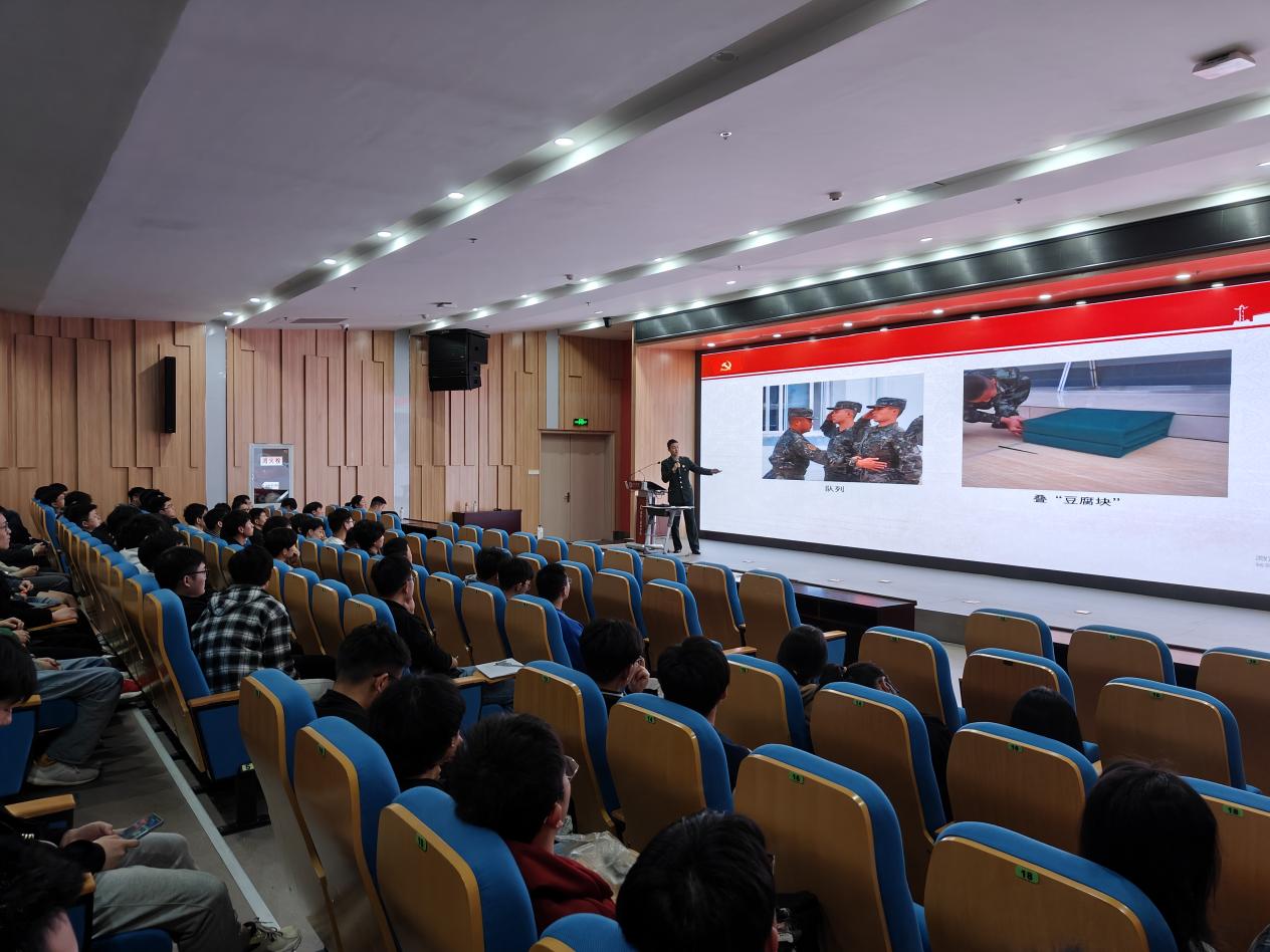 本网讯 为切实做好2023年下半年征兵工作,激发广大学子投身军营、献身国防的爱国热情,鼓励和引导在校大学生积极应征入伍,4月14日,机械工程学院联合校征兵工作站对学院毕业班学子进行征兵动员。机械工程学院党委副书记秦广虎、校征兵工作站赵成婧老师、学院优秀退伍军人机制196汤鹏程同学,以及毕业年级辅导员和毕业班学生出席了本次活动。