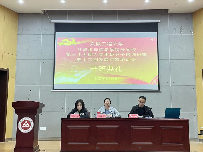 本网讯 为深入学习宣传贯彻党的二十大精神,落实学校“三全六专”工作要求,进一步增强发展对象和入党积极分子思想觉悟和理论素养,端正入党动机,引导学生积极向党组织靠拢。4月14日,计算机与信息学院分党校举行第三十五期入党积极分子培训班暨第十二期发展对象培训班开班典礼。院党委副书记孙德茹、第十二期发展对象培训班班主任陈涛、第三十五期入党积极分子培训班班主任王鸣鹃及全体学员参加。开班典礼由陈涛主持。
