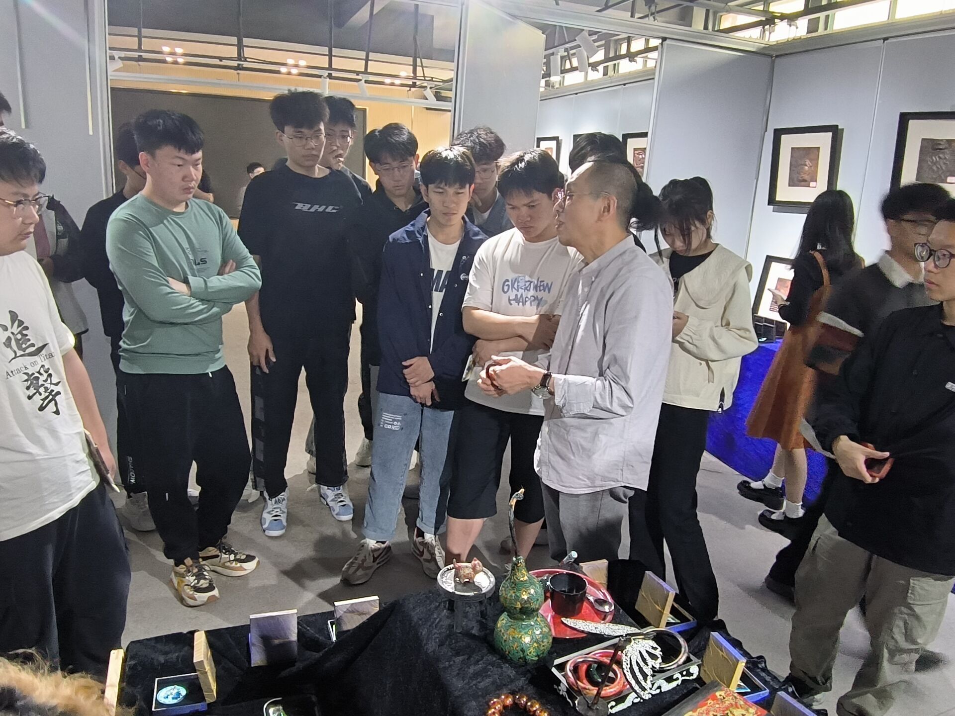 本网讯 为落实学校“三全六专”育人实践,提升思想政治教育和美育工作水平,4月16日,电气工程学院(集成电路学院)积极组织新一批入党积极分子127人赴设计学院参观艺术作品展览。本次参展的作品有金属首饰、编织饰品、纤维艺术、漆艺、铜浮雕以及珐琅工艺制品等。