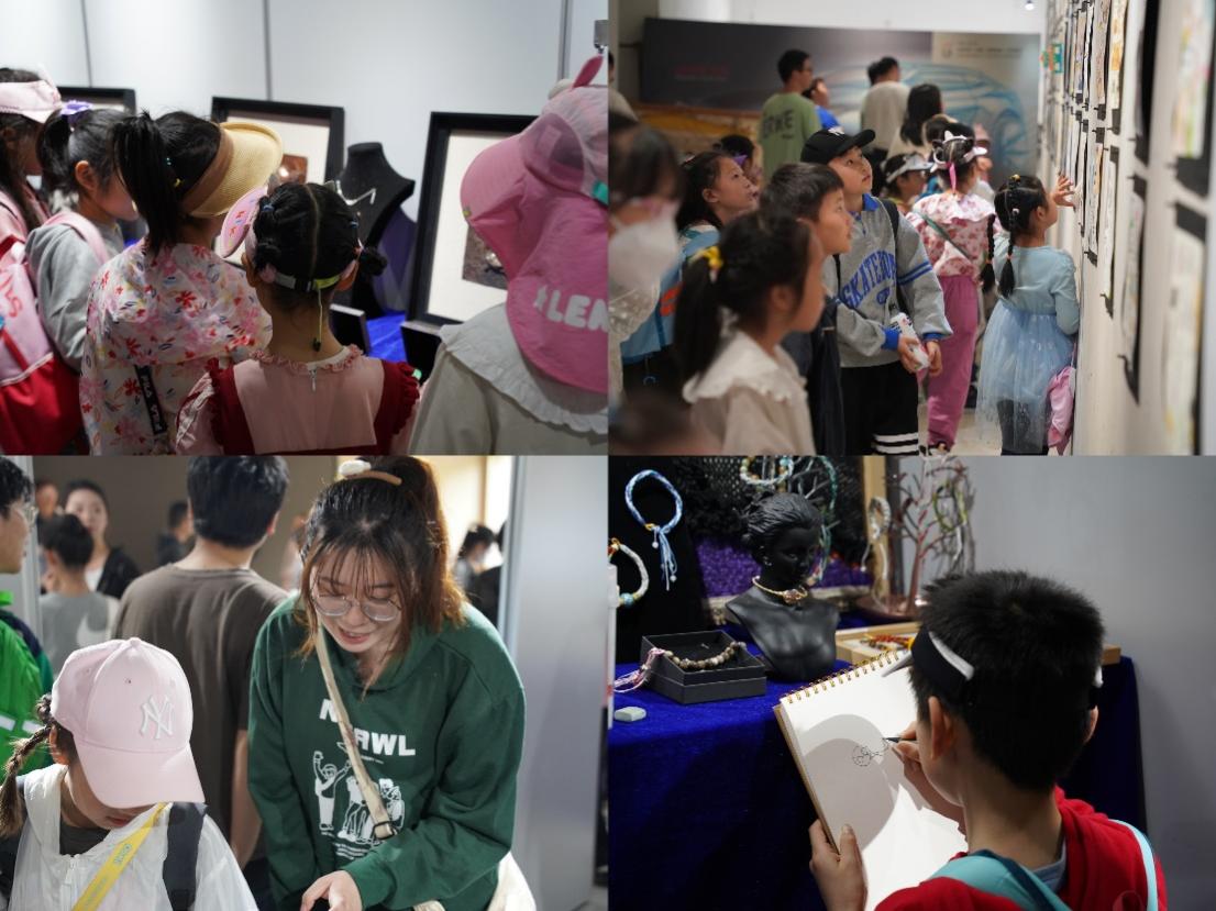 志愿团队邀请芜湖市部分中小学生参观设计学院7教一楼展览。本次参观的展览分别是工艺美术专业作品联展与广告学专业“玩转老字号”设计作品展,展览的作品蕴含着学生们的设计巧思,小朋友们纷纷驻足欣赏,发出连连赞叹。