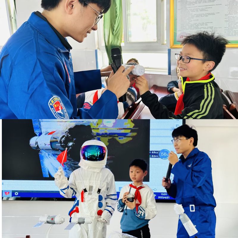 航天科普讲座临近尾声之际,主讲人邀请同学们上台现场模拟火箭发射过程,在5、4、3、2、1倒计时中,火箭载着同学们的“航天梦”顺利升空。
