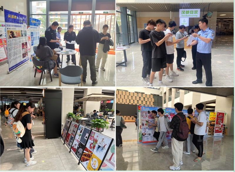会同公安机关开展宣传教育活动。4月19日芜湖市公安局经开分局和万春派出所进校园与管委会、校区警务站协同开展宣传活动,通过分发宣传单页、主题作品展出和引导学生关注“中国反邪教”微信公众号等途径扩大活动覆盖面和提高在师生中的影响力。