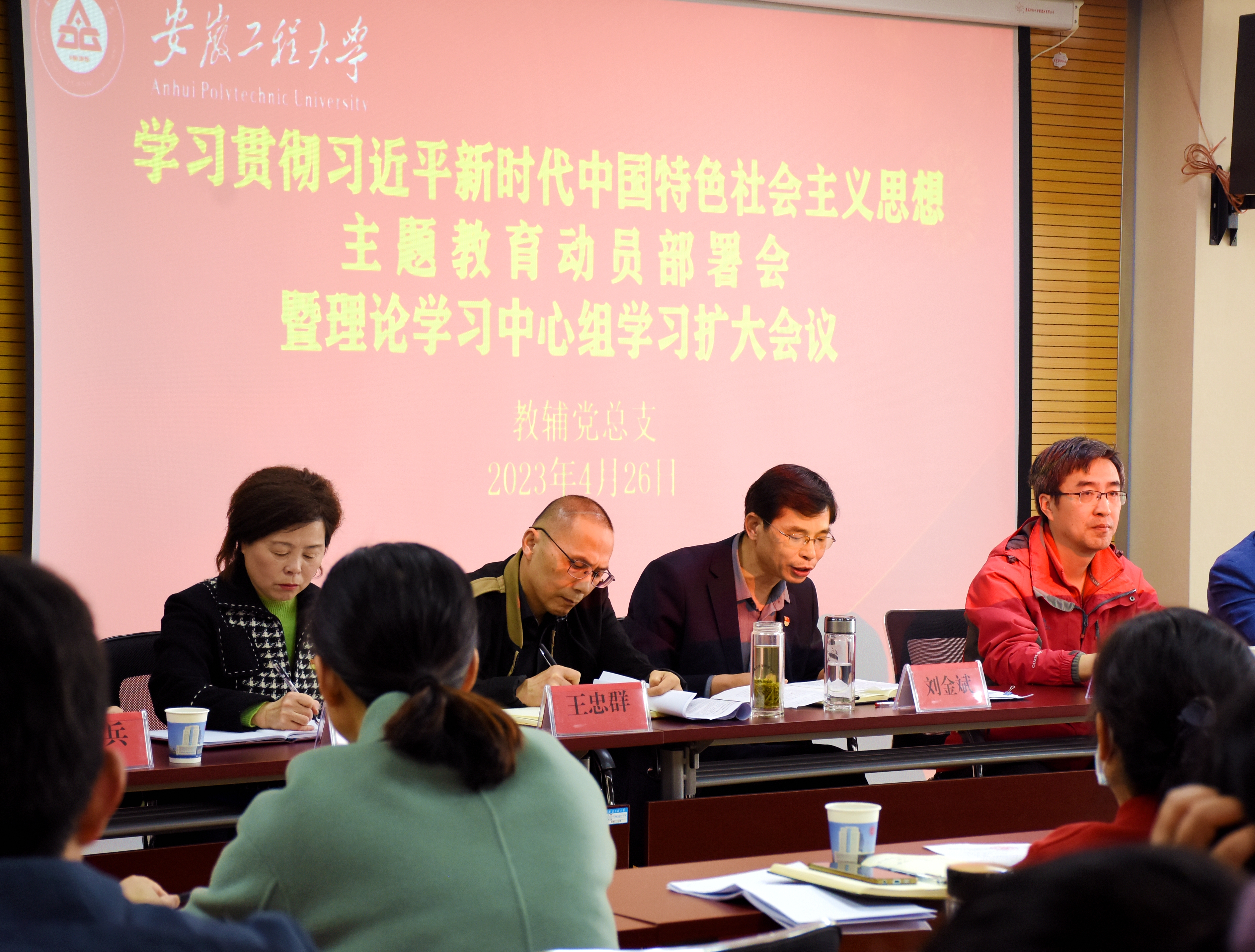 会上宣读了《中共安徽工程大学教辅总支委员会学习贯彻习近平新时代中国特色社会主义思想主题教育领导小组》《中共安徽工程大学教辅总支委员会关于深入开展学习贯彻习近平新时代中国特色社会主义思想主题教育的工作方案》,教辅党总支书记刘一作动员讲话。