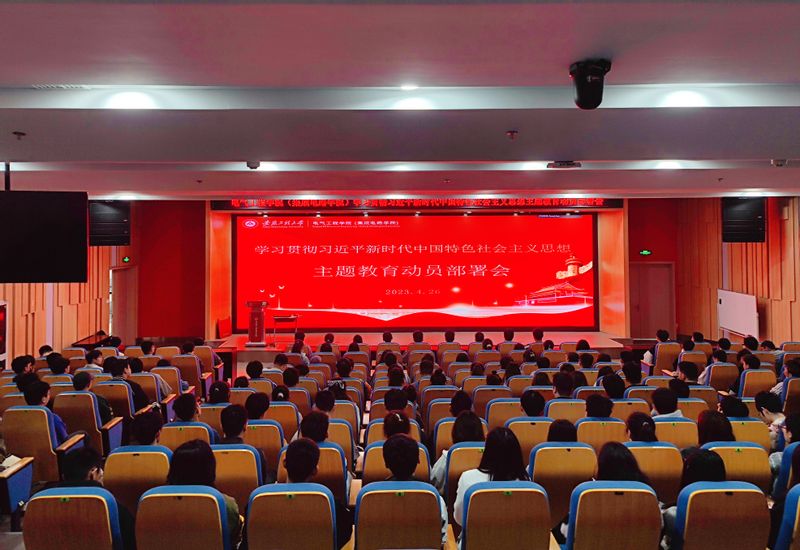 本网讯 4月26日,电气工程学院(集成电路学院)在国际工程师学院龙胜楼206会议室召开学习贯彻习近平新时代中国特色社会主义思想主题教育动员部署会,学院党委理论学习中心组成员、支部书记、科级干部、教师党员参加,会议由学院党委书记杨会成主持。学院研究生党员、本科生党员分别在本部校区5教217会议室、国际工程师学院校区大报告厅分会场同步收听收看。