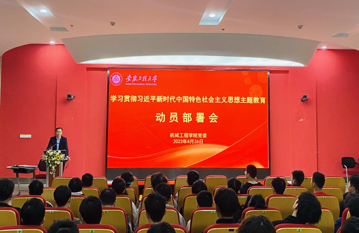 本网讯 4月26日,机械工程学院在国际工程师学院实训楼3-1-204会议室和小报告厅分别召开了学习贯彻习近平新时代中国特色社会主义思想主题教育动员部署会。学院领导班子成员、全体教职工党员、党支部书记和学生党员参加会议,院长王建平、党委副书记秦广虎分别作教师党员和学生党员主题教育动员讲话。学校主题教育检视整改指导组成员、国际工程师学院校区管委会常务副主任魏长顺参会并作指导。