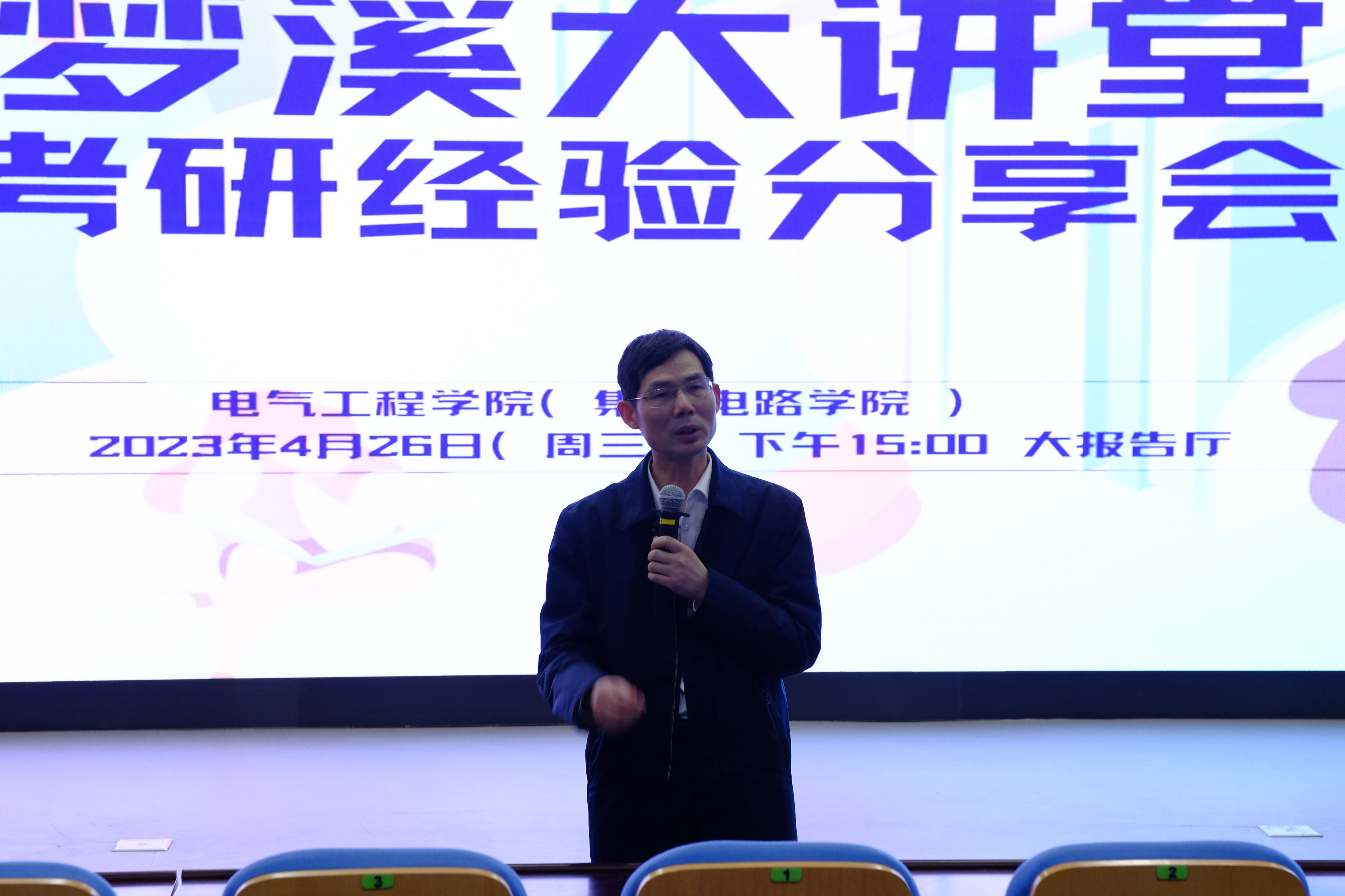 本网讯 为进一步推深做实学校“三全六专”育人实践工作,引导学生们进入“学”起来快车道,助力学院学子成功考研。4月26日,电气工程学院(集成电路学院)在国际工程师学院大报告厅举办梦溪大讲堂·考研经验分享会。学院党委书记杨会成、党委副书记迟传德、优秀考研学生代表,2020级、2021级300余名学生参加了此次分享会。