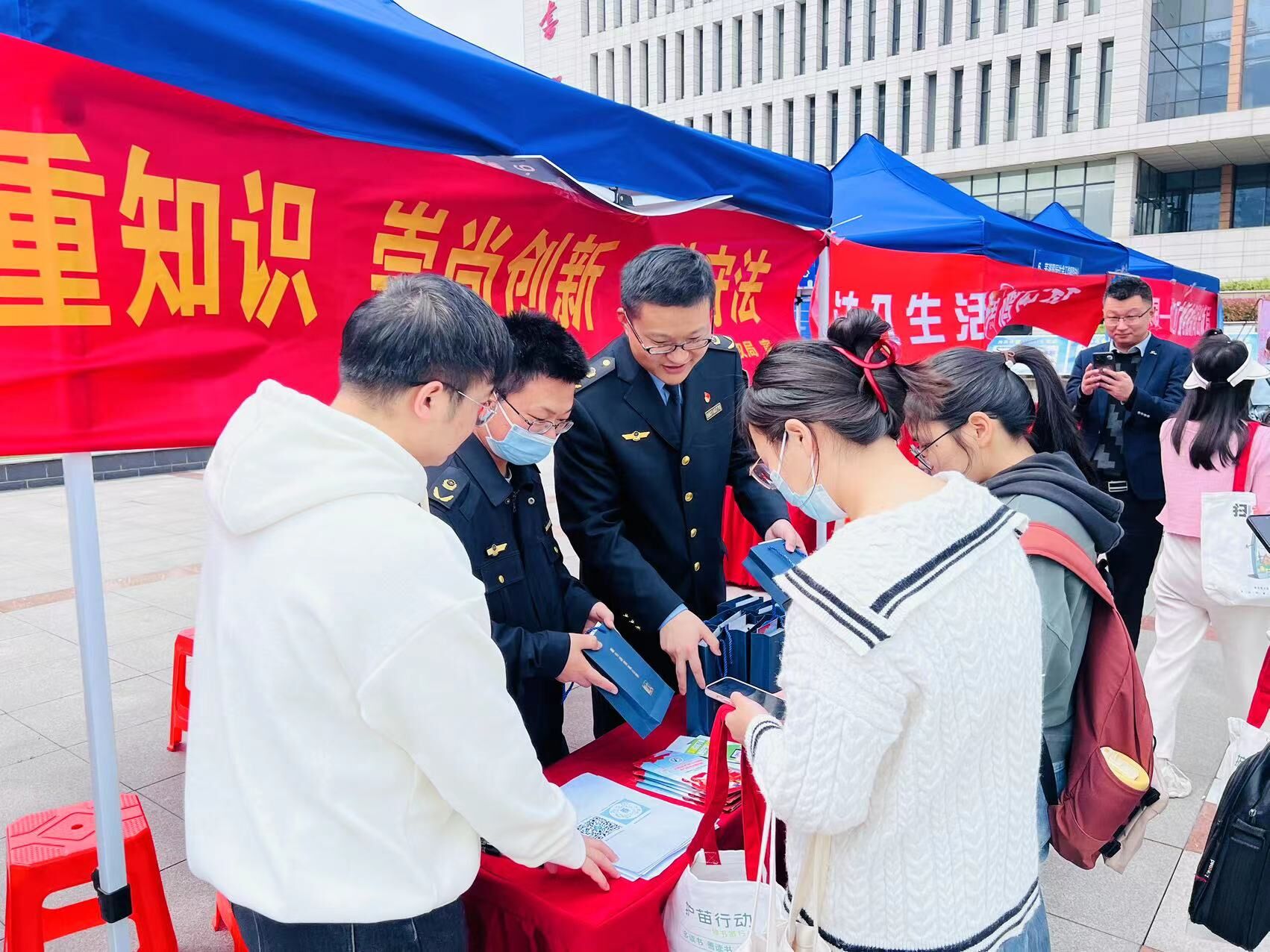 今年全国知识产权宣传周活动的主题是“加强知识产权法治保障,有力支持全面创新”。活动中,通过设置“知识产权保护科普”展位、悬挂宣传横幅标语、发放宣传册、组织答题互动和答疑解惑等形式,向在校大学生宣传知识产权发展历程、知识产权保护政策、知识产权保护典型案例、知识产权保护法律法规等知识。