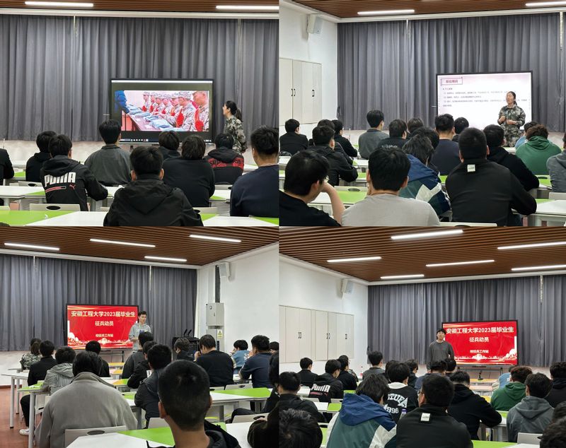 会议伊始,毕业班辅导员马晨简要介绍了本次征兵推进会的主体内容、出席人员。学院党委书记胡承功以家国情怀、青年的使命担当为精神主线,对毕业生进行了动员,他引导毕业生积极响应国家政策号召,以实际行动为国防建设添砖加瓦。校征兵工作站负责人赵成婧老师首先通过视频短片展示了学校2023年春季入伍学生的英姿风采,并全面系统地为在场毕业生讲解了征兵政策、入伍优待、征兵流程及应征注意事项。学院2023届毕业班退役士兵代表肖大鹏畅谈军旅生涯中身心素质、成长阅历等多方收获。退役军人党员何志文分享了今年通过大学生退役士兵专项报名考取本校研究生的成功经验。两位同学用各自的亲身经历呼吁毕业生及时把握政策优势,建立长远人生规划,积极投身部队生活,挥洒自己的青春热血。