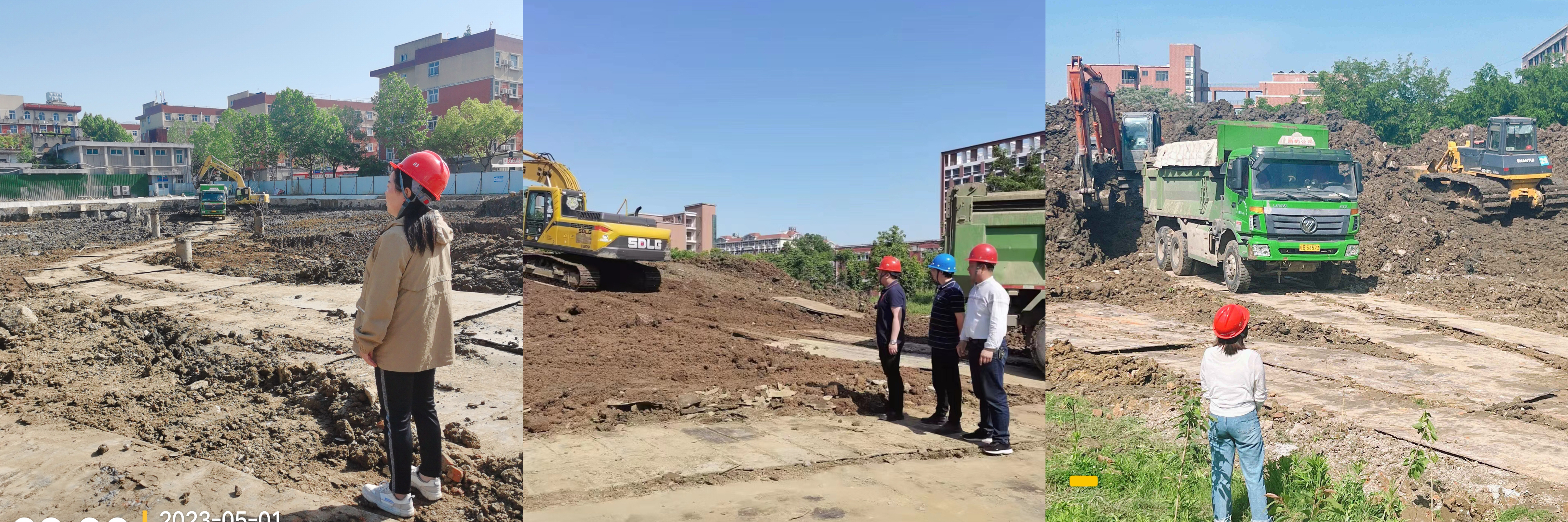 西区师生服务中心项目共需外运土方约30000m³,在放假一周之前,基建办就如何确保安全前提下完成土方外运进行调研和论证,通过对运输线路的反复临摹和各时间段校园道路人流量的调研,最终确定了一条最佳路径并利用“五一”假期,采取“人休机不停”方式,4天时间完成第一批土方外运任务。