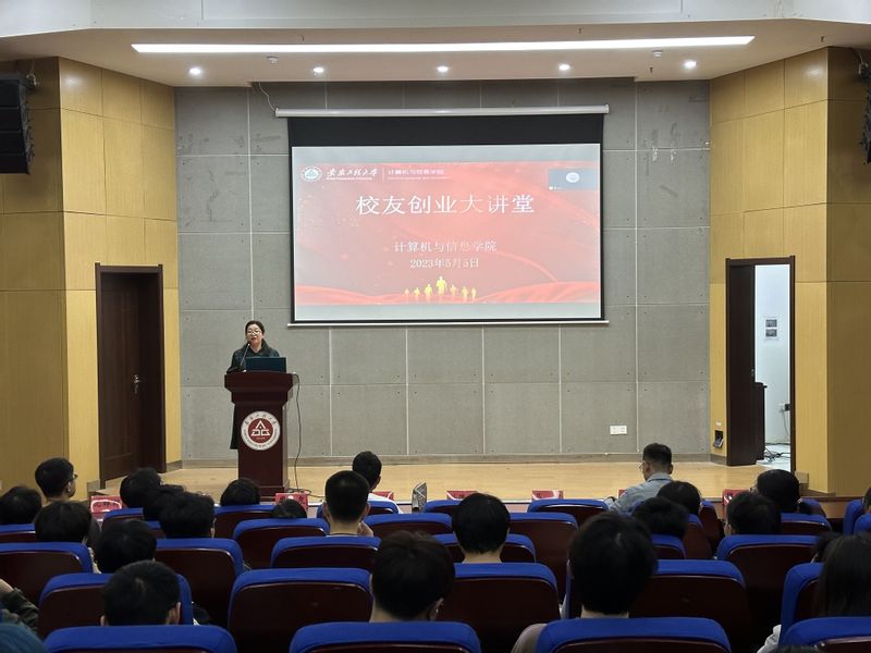 本网讯 为帮助学生树立正确的职业生涯规划观念,助力毕业生创业就业,推进毕业生就业工作,5月5日,计算机与信息学院在C座5楼报告厅举办校友创业大讲堂活动,本次讲座邀请到优秀校友计算机971班班长水炜主讲。院党委副书记孙德茹、学工秘书、2020级辅导员和学生代表参加。