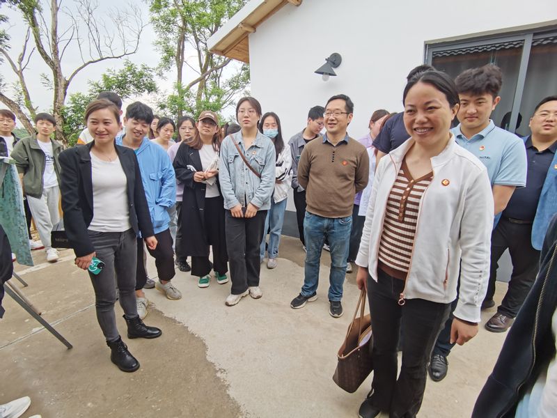 在鸠兹湾,我校2012届校友、鸠兹湾项目部门负责人杨洋带领大家参观鸠兹湾建设项目,介绍校友企业致力乡村振兴建设的思路做法。在参观过程中,学员了解到鸠兹湾艺创共富乡村项目是花桥镇与知名校友夏云兴、顶峰文旅负责人共同推出的策划设计建设运营(EPCO一体化)模式。其中,“政府引导、农民主体、企业运营、村集体参与、市场化运作”的共建共享共富理念深深感染启发了现场师生,对乡村振兴战略实施充满信心。