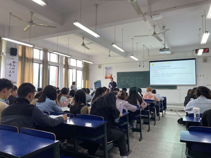 在课堂上,曹老师教学语言流畅、声音洪亮,教学思路清晰,重点突出,以法为据、以理服人、以情动人、以行带人、以智教人、以德育人。通过提问引导学生参与课堂互动,并结合实事深入浅出地讲解知识点,使学生们更容易理解和掌握。在讲授过程中注重对学生价值观的引导与培养,课堂效果良好。