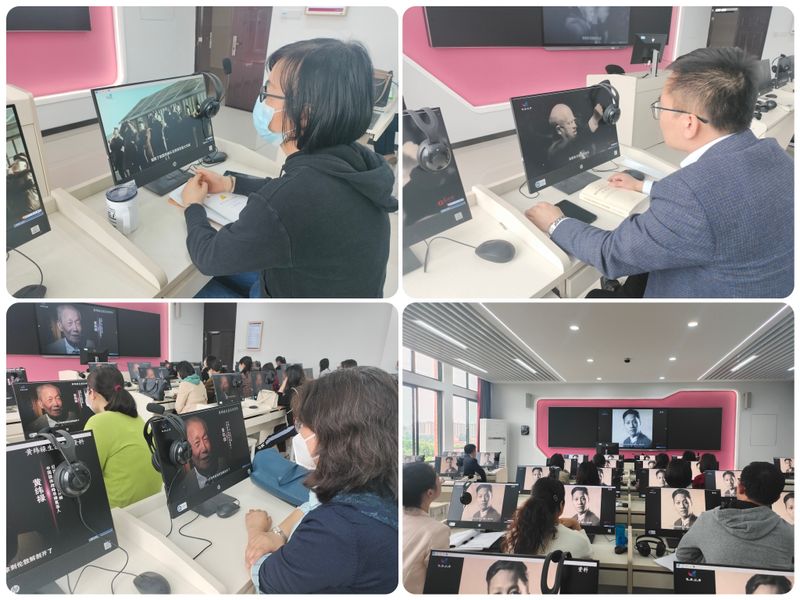 英语系主任、英语系教师党支部书记韩利敏和日语系教师李晓光分别作交流发言。韩利敏说,“老一辈科学家、科技工作者为祖国事业鞠躬尽瘁、奋斗终生的崇高精神令人敬佩。本次主题学习,为专业教师开展课程思政提供了很好的教学素材,坚定了我们从榜样事迹中汲取奋进力量,为现代化强国建设和高校人才培养事业顽强拼搏、不懈奋斗的信心和决心”。李晓光说,“读书班的‘第一课’既原原本本学习了党的理论知识,也感悟了老一辈科学家的感人事迹,这种由学院统一组织,把教师党员集中到一起开展专题学习的形式很好,能沉下心,也能学进去,增加了不同支部老师们的交流,对于推动工作发展具有启发意义”。