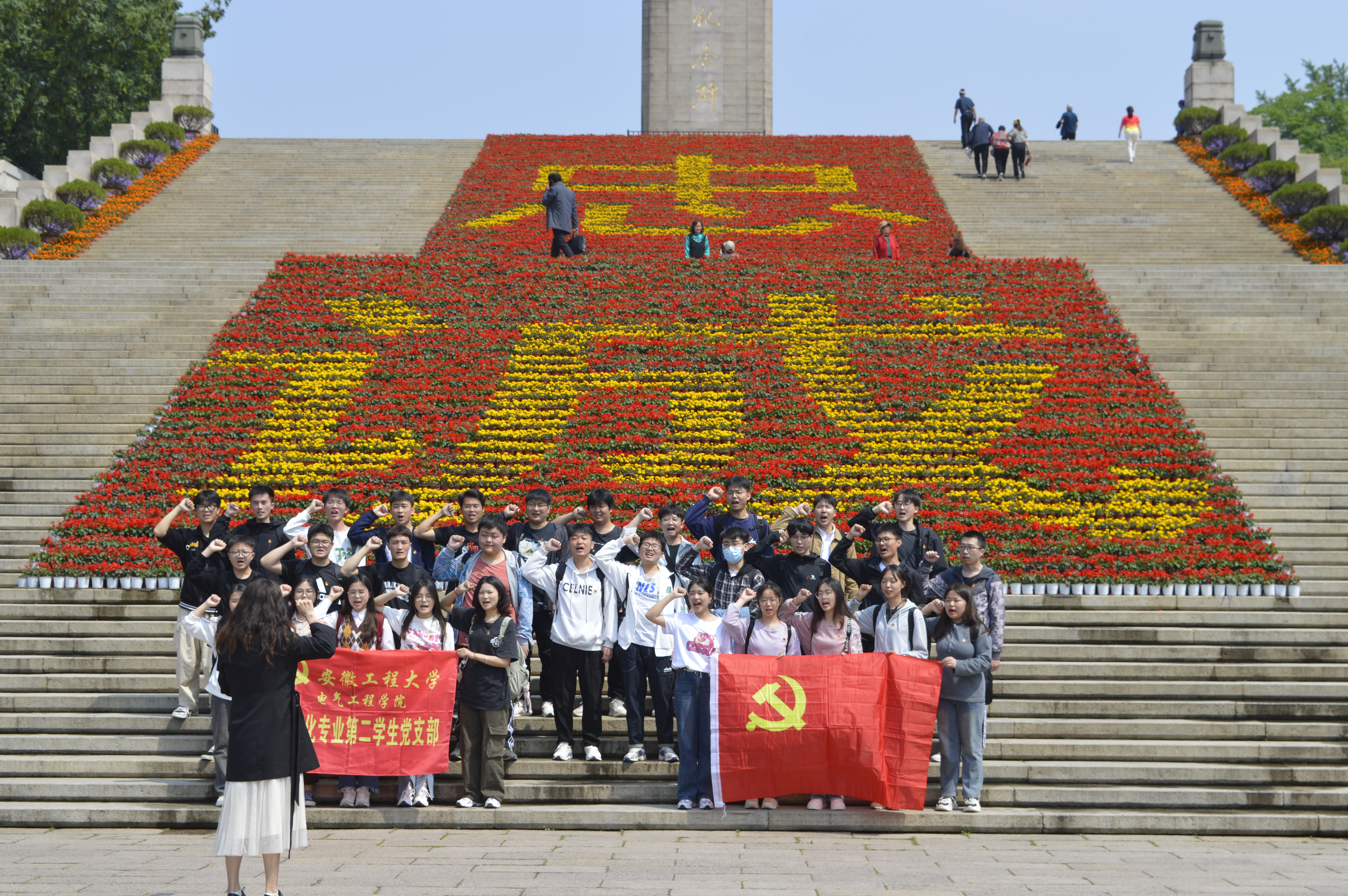 离开烈士就义群雕,同学们来到了雄伟的雨花台烈士纪念碑。面对雨花台烈士纪念碑和鲜花铺成的“忠诚”二字,同学们重温了入党誓词,更加坚定了对党忠诚、随时准备为党和人民牺牲一切的理想信念。