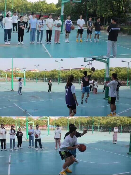 活动中,汤建文向同学们普及了有关篮球的基础知识,让同学们对篮球这项运动有了更深入的了解。随后带领同学们做了一些拉伸运动并进行了篮球技能训练,通过亲身示范向同学们展示投篮的技巧。接着同学们围绕传接球、三步上篮、定点投篮进行了专项训练,并进行了分组对抗。大家热情投入,你追我赶,在酣畅淋漓的篮球运动中享受着点点滴滴的欢乐,彰显了青春的活力与色彩。