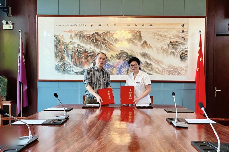 紫荆花控股集团董事长助理孟雅丽对朱铁军一行的到来表示欢迎。她简要介绍了紫荆花控股集团下属特色小镇的规划和建设情况以及所取得的成绩。朱铁军介绍了学校留学生教育培养相关情况。他希望,校企双方进一步加强合作交流,实现校企双赢。参观走访期间,双方就合作共建留学生文化教育实践基地达成了一致意见,并签署了合作协议。