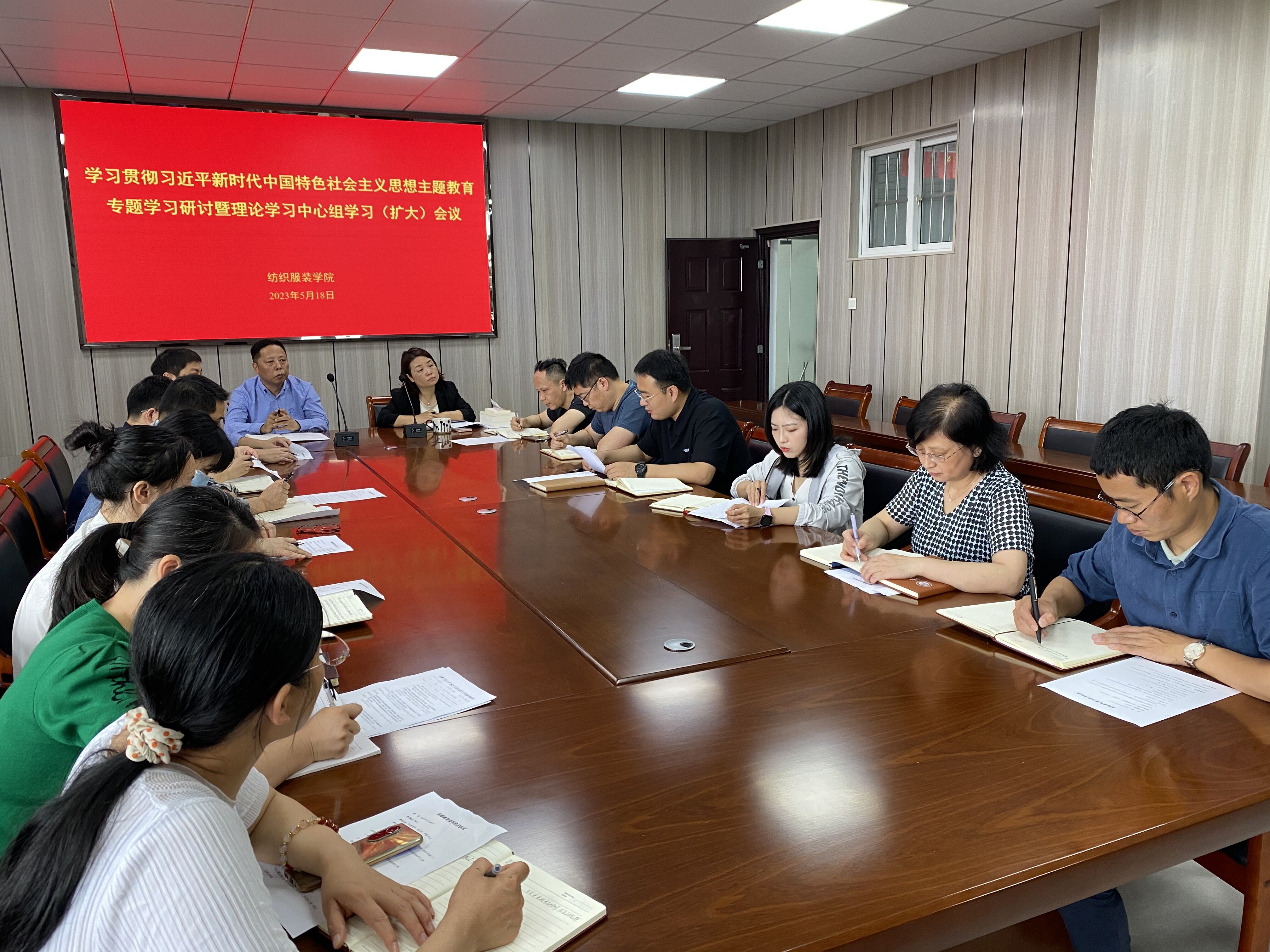本网讯 为深入学习贯彻习近平新时代中国特色社会主义思想主题教育,以学铸魂、以学增智、以学正风、以学促干。5月18日,纺织服装学院举行学习贯彻习近平新时代中国特色社会主义思想主题教育读书班开班式暨理论学习中心组(扩大)学习会。学院理论学习中心组成员、各系主任、支部书记及学生代表参加会议,会议由党委副书记(主持工作)徐珍珍主持。