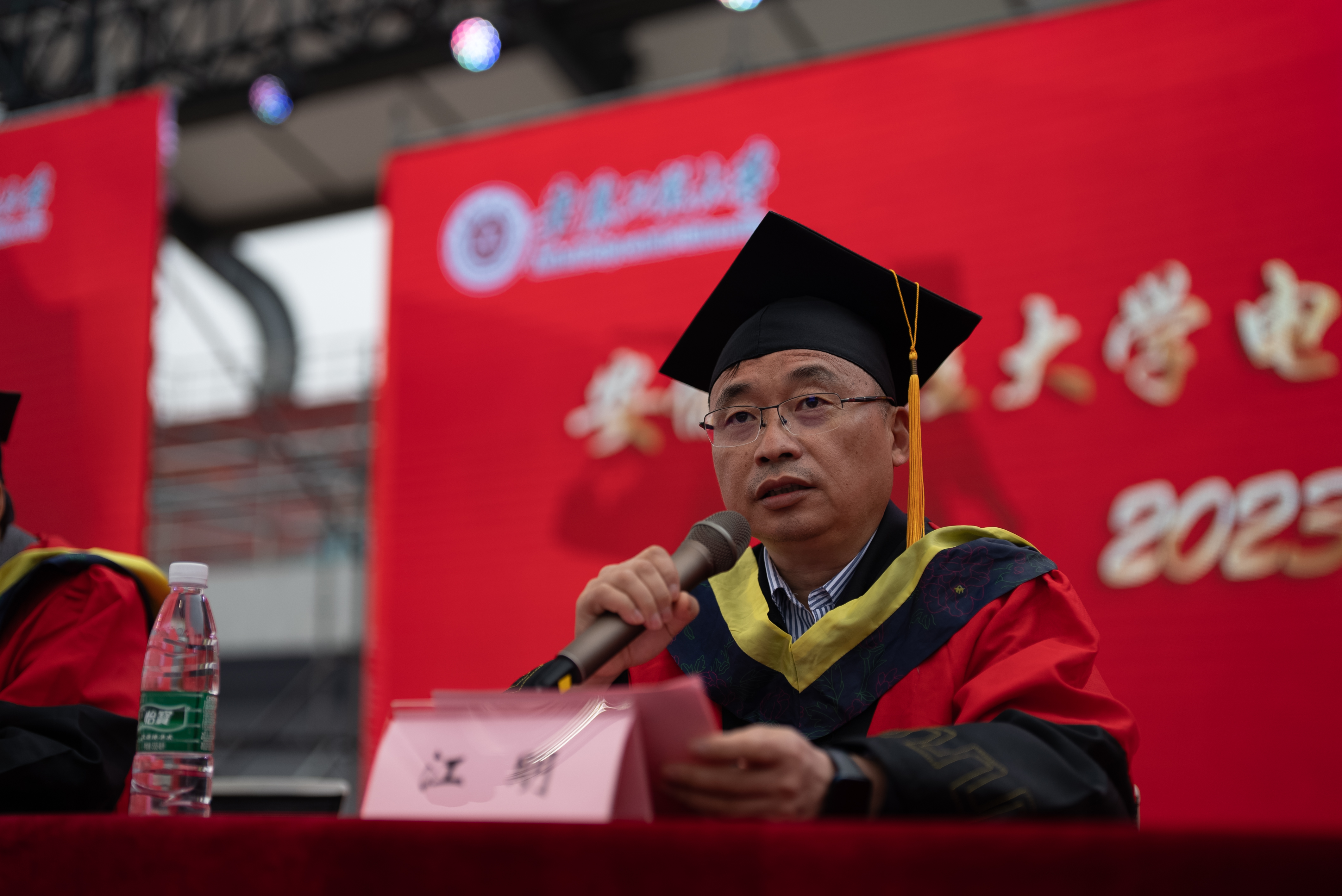 本网讯 5月22日,电气工程学院(集成电路学院)2023届本科生毕业典礼在国际工程师学院校区运动场举行。副校长叶常林、学院党政班子、教师代表、毕业班全体辅导员及毕业生家长代表出席典礼,共同为学院857名毕业生送上祝福。典礼由院党委副书记迟传德主持。典礼开始前,8位毕业生代表集体合唱,用歌声表达了浓浓的不舍之情和走好未来之路的坚定信心。