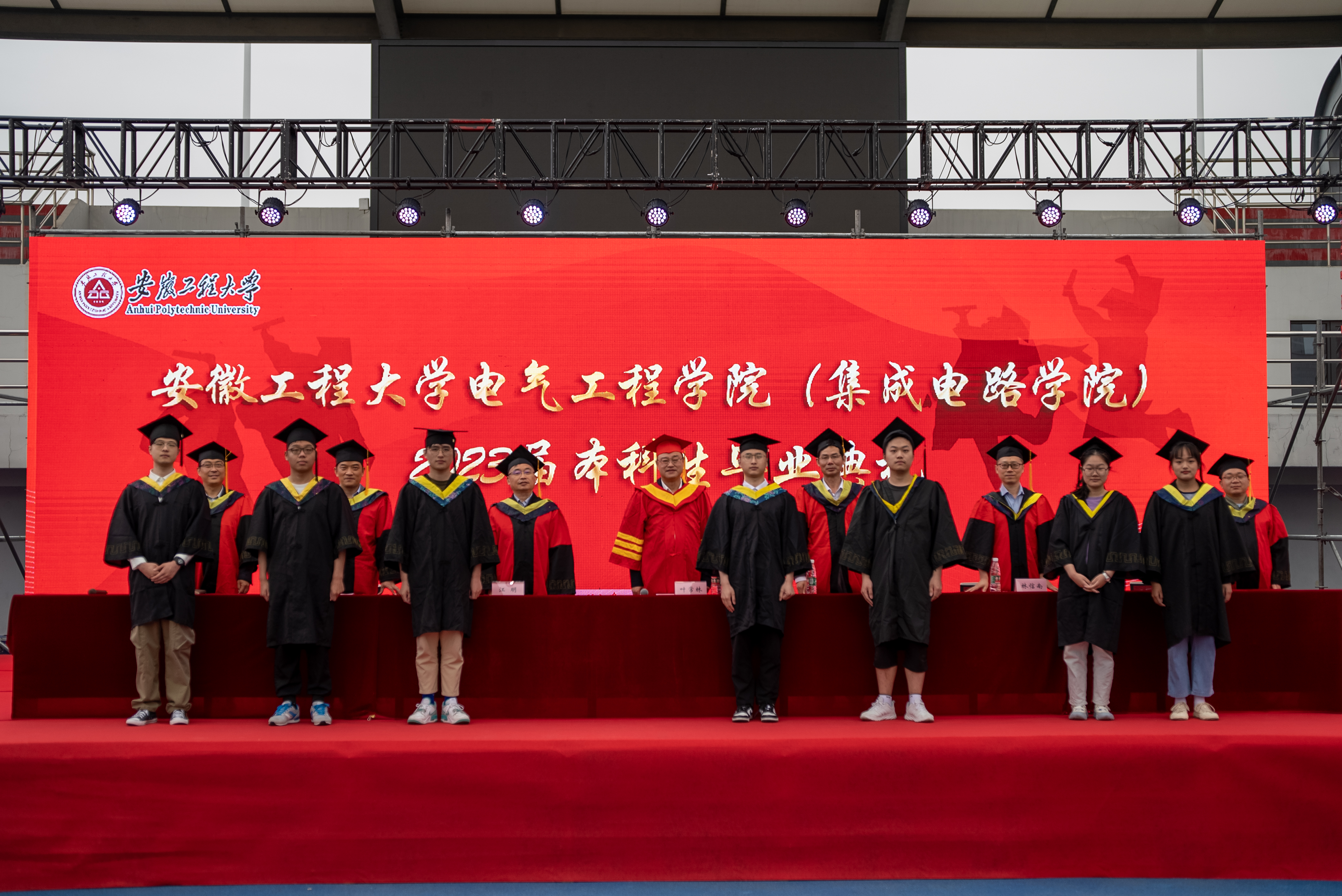 “我由衷地为大家感到高兴。我谨代表学校向圆满完成学业的857名电气学子表示热烈的祝贺!向悉心培养和关心你们成长的老师们、家人们,致以诚挚的感谢!……”叶常林在讲话中带领同学们回顾了在安徽工程大学经历的不平凡四年。从2019到2023,从自动化、电子信息工程两个专业入选国家一流本科专业建设点,再到疫情防控工作默默坚守与付出,叶常林说:“四年前,你们与学校庆祝相识;四年后,学校与你们纪念离别。你们以青春为笔,在这里书写一段锦绣华年。凡是过往,皆为序章;凡是未来,皆有可期。每一次告别都是为了更好的出发,每一次旅程都通向更广阔的未来。从今天起,你们即将踏上人生的新征程,迎接更加广阔的天地和更加丰富的人生。无论你们将来去往何方,无论你们将来从事何种职业,我相信你们都会用行动证明工程大学是设计师、工程师、创业者和企业家的摇篮,去迎接未来的挑战和机遇。”他对同学们提出殷切嘱托,希望同学们理想远大、信念坚定,锤炼品德、执着追求,刻苦学习、勇于担当,把“雨耕勤作 赤铸精工”的大学精神和“尚德敏学 唯实惟新”的校训内化于心,外化于行。