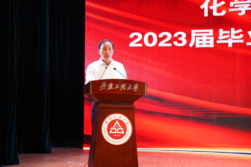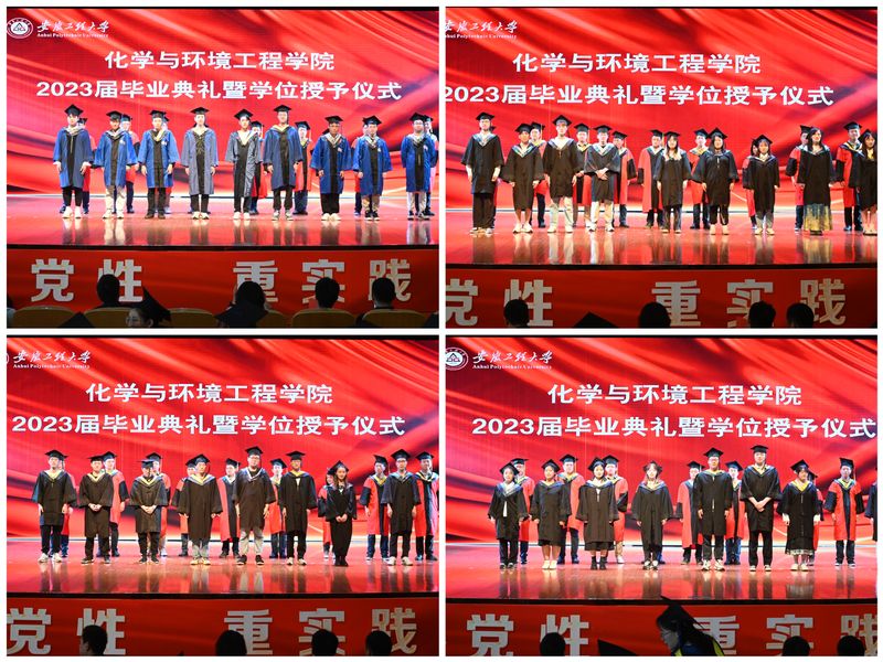 本网讯 五月榴花照眼明,枝间时见子初成。5月27日,化学与环境工程学院2023届毕业典礼暨学位授予仪式在师生活动中心大礼堂隆重举行。校党委副书记苏国红,江苏蓝必胜化工环保股份有限公司副总经理徐林兰,蓝必盛工程经理黎飞虎,应化02级校友、苏州大学特聘教授、博士生导师程亮,安徽卫生健康职业学院医学系副主任余晨辉,学生处副处长郭全根,校团委副书记李恒奎,宣传部副部长王燕,化环学院党政领导出席活动。学院各系部主任、全体辅导员、兼职辅导员、班主任、教师代表和2023全体届毕业生和各年级学生代表参加典礼。毕业典礼由学院党委副书记胡承功主持。