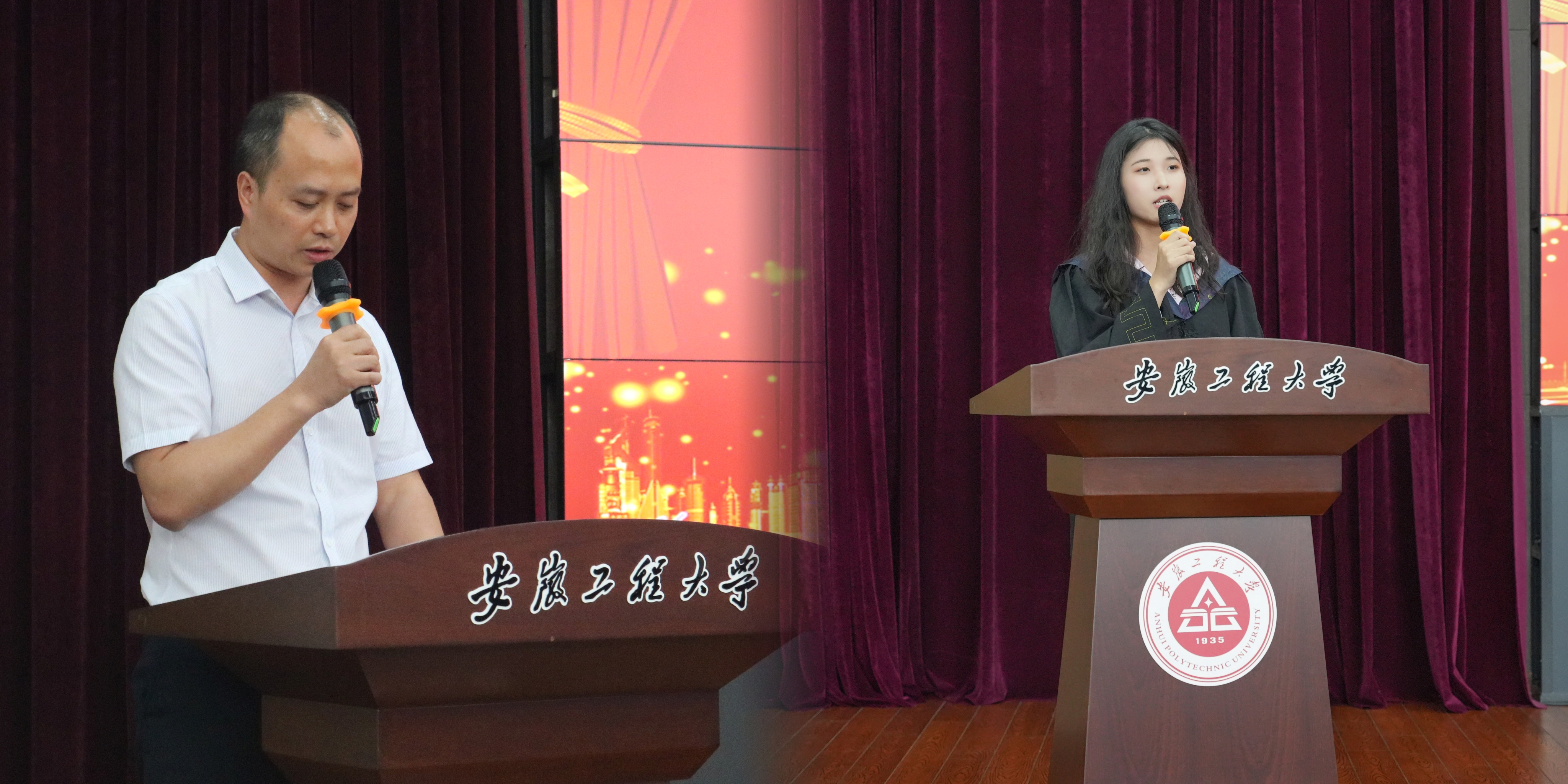 教师代表李飞回忆四年的点点滴滴,勉励同学们在知识大爆炸的时代坚持学习、明确目标,做一个有目标、有追求的人。勉励大家,永远不要放弃梦想,梦想的翅膀会带领你们走向更好的未来。毕业生代表程路程同学发言,向母校的悉心培养、老师的谆谆教诲表达了感谢,并祝愿学校滋兰树蕙、永续华章,祝愿老师工作顺利、桃李芬芳!