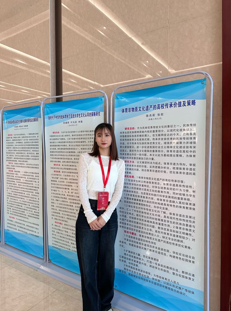 22级研究生陈杰莉题为《体育非物质文化遗产的高校传承价值及策略》的论文以墙报形式进行了交流。