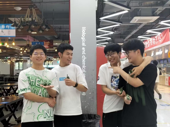 食堂工作人员在活动前就精心准备好了糯米、粽叶、蜜枣等材料,完成泡米、洗粽叶等工序。等食堂阿姨详细讲解了包粽子的要点后,同学们便迫不及待地忙碌起来。卷粽叶、放糯米、放蜜枣、捆扎,粽叶在同学们的手上翻舞,现场还有很多同学和老师驻足观看,一时间,米香、粽叶的清香伴随着笑声飘荡在活动现场。包粽子的手法,一折叶、二盛料、三压实、四包、五扎绳,看似简单,但要做个漂亮的粽子还是需要一点功夫的,同学们互帮互助,一起感受浓浓的文化氛围。统计222王深奥说:“非常开心参加本次包粽子活动,这是自己第一次亲手包粽子,活动后也将自己包的粽子带回去与舍友分享,看见舍友吃粽子的时候内心充满了喜悦”。这次活动使同学们增进了友情,拉近了彼此的距离,也传承了中国传统文化。