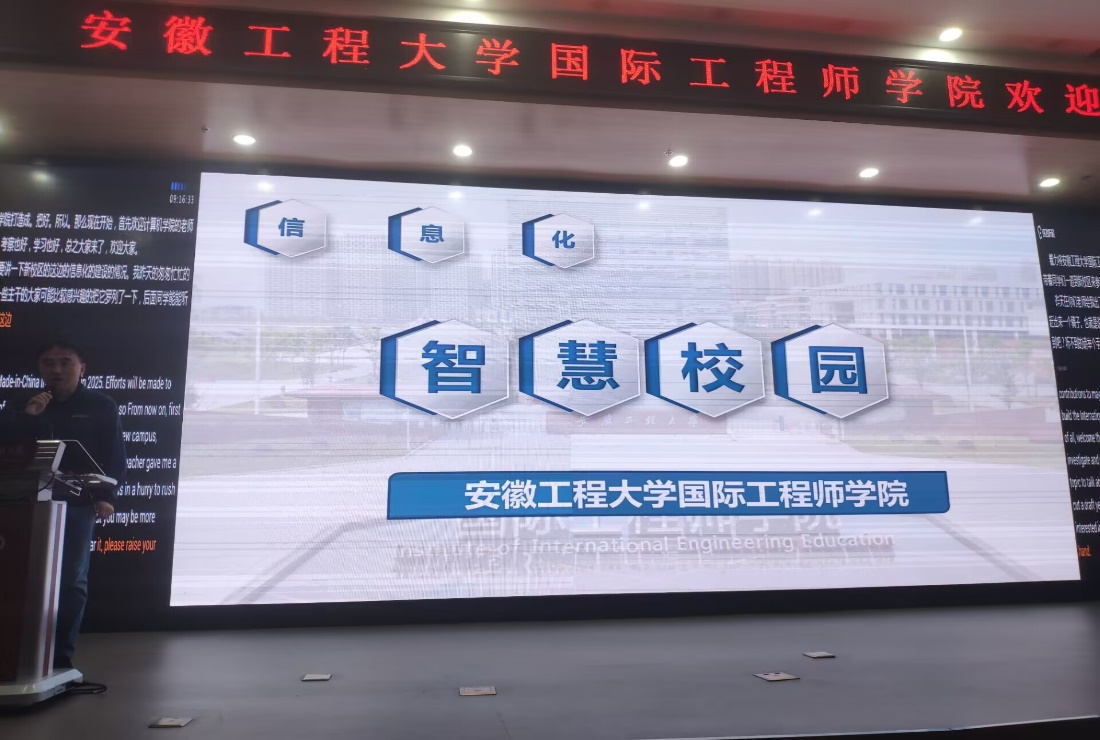 本次实习也得到了国际工程师学院校区管委会的大力支持,信息科科长赵翔在可容纳400人的报告厅做了关于智慧校园建设的报告,从硬件、系统、内容和数据四个维度分别介绍了国际工程师学院的网络通信基础设施、一体化的校园管理系统、各类教学资源库和基于数据驱动的智慧教学、基于洞鉴系统和电子围栏的校园安全、便捷生活服务等。在物业工作人员的带领下,各专业学生分批参观了监控室、图书馆、智慧教室、餐厅、工程训练中心等,了解了信息技术在智慧教学中的应用,切身体会了信息技术给校园生活带来的巨大变化和便捷之处。