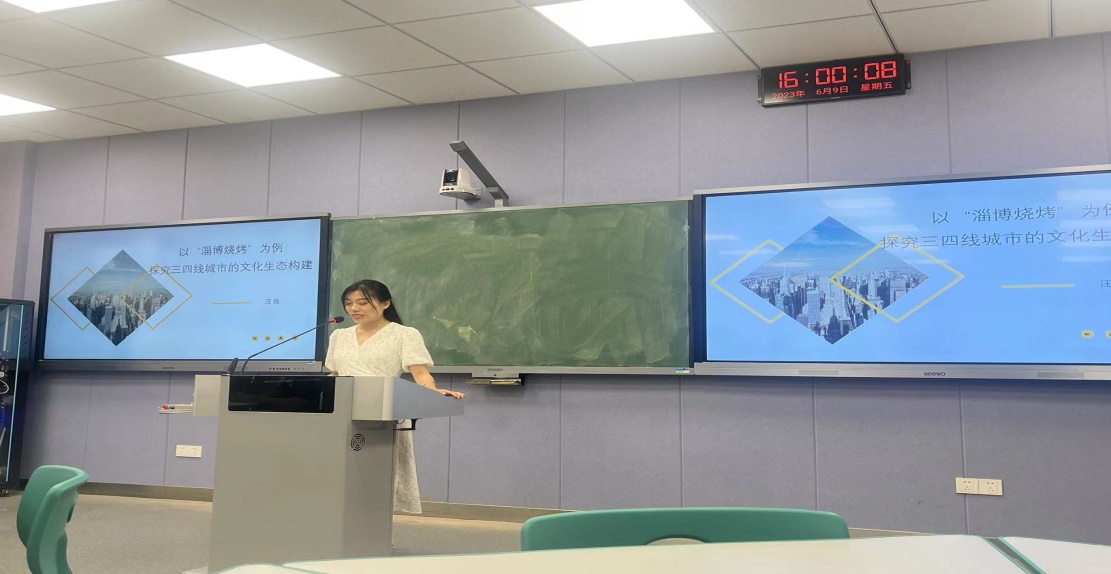 汪晨博士以“探究三四线城市的文化生态构建”为主题,以淄博烧烤火爆的现象为案例进行了分析,并探讨了其出圈的原因。她指出,淄博烧烤之所以在当地取得如此巨大的成功,是因为它能够唤起人们对传统美食的记忆和情感,成为城市文化的一部分。