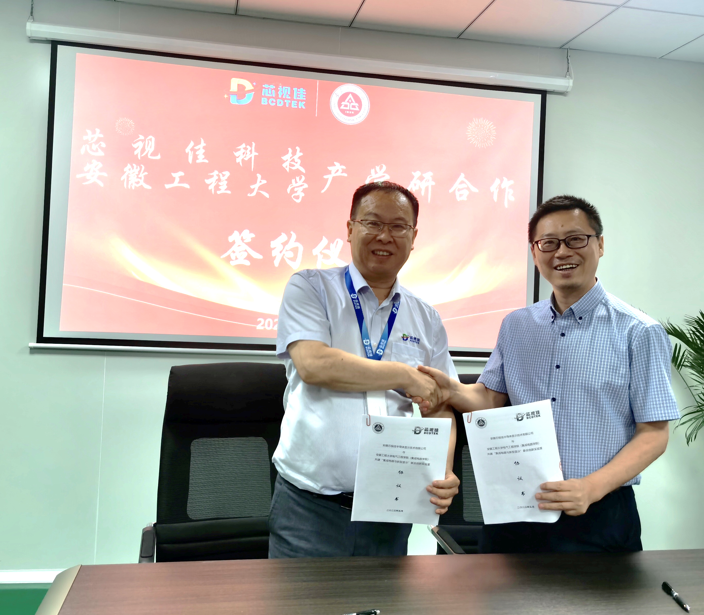 本网讯 6月13日,电气工程学院(集成电路学院)副院长(主持工作)林信南与青年教师代表一行4人赴安徽芯视佳半导体显示技术有限公司(淮南)开展企业交流合作活动,双方签订了产学研战略合作协议,并为校企合作共建“集成电路与新型显示”联合创新实验室揭牌。公司董事长曹绪文、总经办负责人王睿、产品负责人等出席了相关活动。