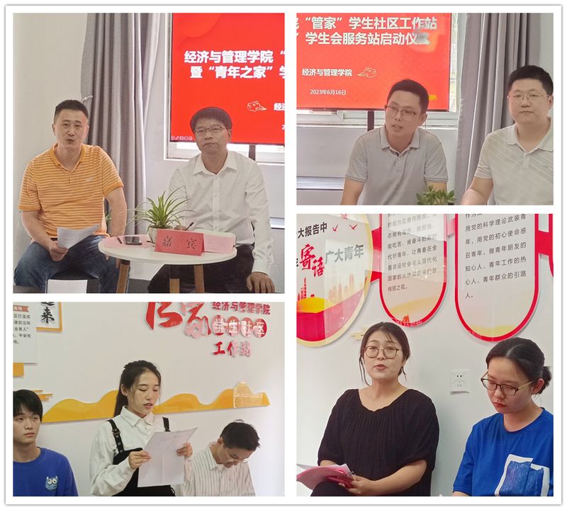 此次经济与管理学院“管家”学生社区工作站暨“青年之家”学生会服务站顺利揭牌,进一步推动学校、学院领导力量、管理力量、思政力量、服务力量深入一线,落实一线工作法,让人在一线、心在一线、思在一线、干在一线落到实处,实时全面了解学生思想动态,满足学生成才需求,让学生社区真正成为坚持党的领导的坚强阵地,成为践行一线工作法的最好抓手,成为防范风险和挑战的前沿阵地,成为培养时代新人的创新场域。